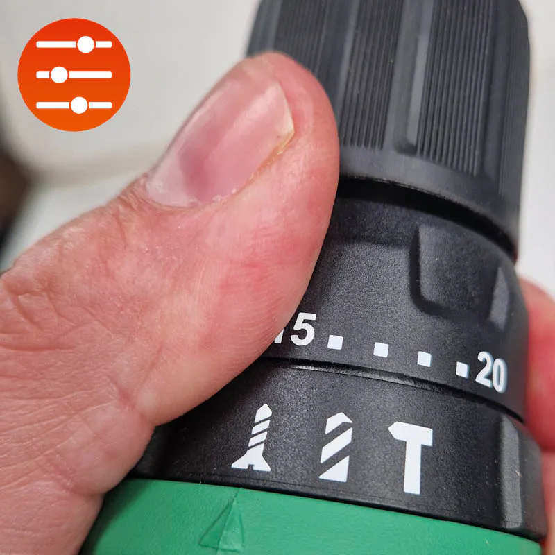 2. Nopeuden, vääntömomentin ja toiminnon valintaan käytettävät napit napsahtavat selkeästi paikoilleen, kun konetta säädetään.