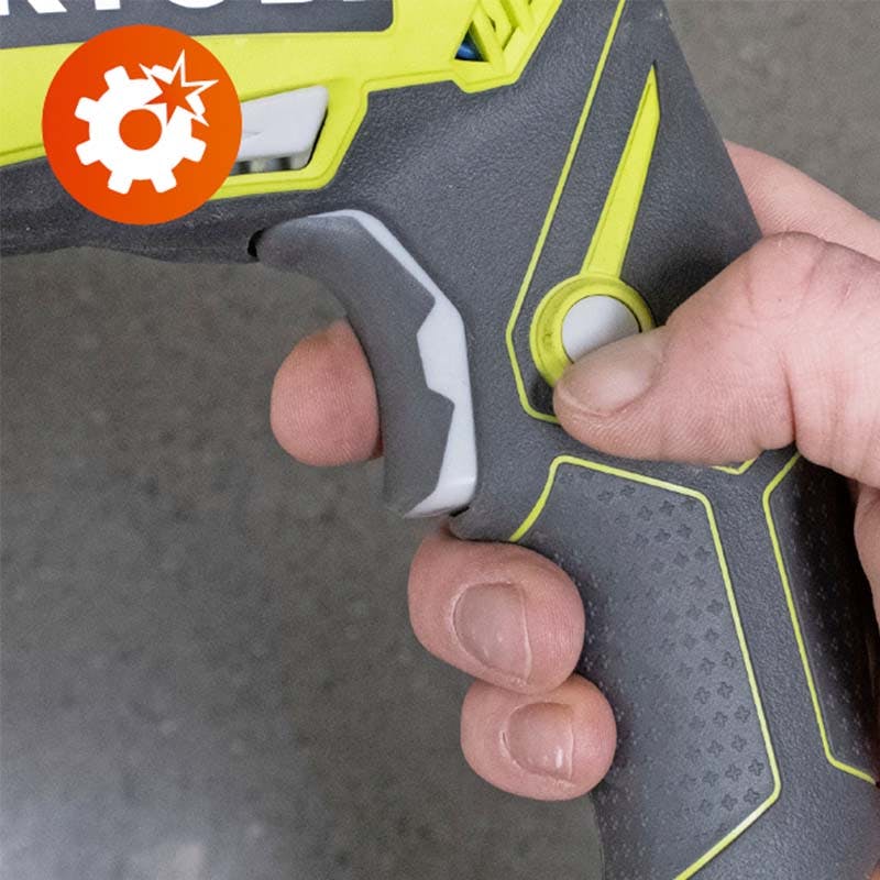 Liipaisin on pelkkä käynnistys- ja sammutusnappi. Koneen porausnopeutta säädetään sivulla olevasta pyörästä.