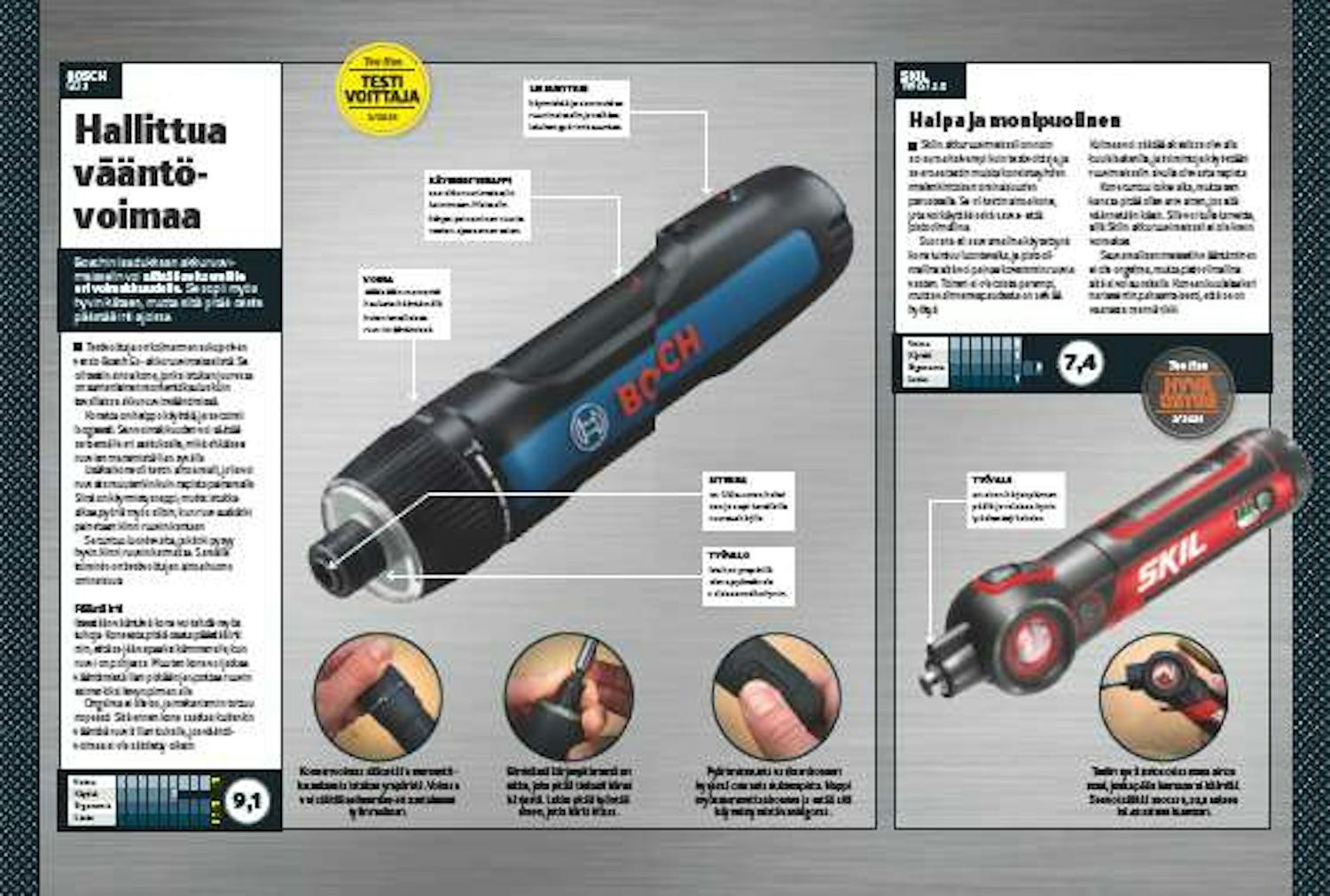 Akkuruuvimeisselit testataan ja arvioidaan näillä neljällä osa-alueella: Voima, käyttö, ergonomia ja laatu.