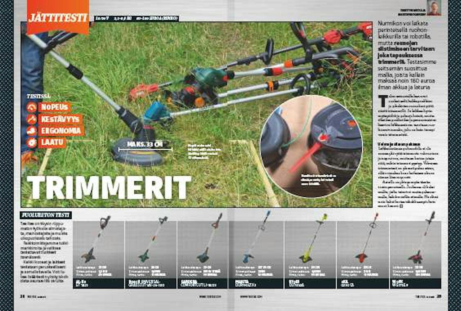 Kaikki trimmerit leikkasivat nurmikon reunat siisteiksi ja suoriksi, joten päätimme keskittyä koneiden nopeuteen ja tehokkuuteen.