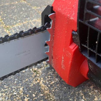 Laipan ja ketjun kotelo on tehty kokonaan metallista toisin kuin useimmissa muissa testin sahoissa. Kotelossa on kätevä sulkumekanismi, ja ketjua on helppo kiristää sivussa olevalla pienellä säätöpyörällä.