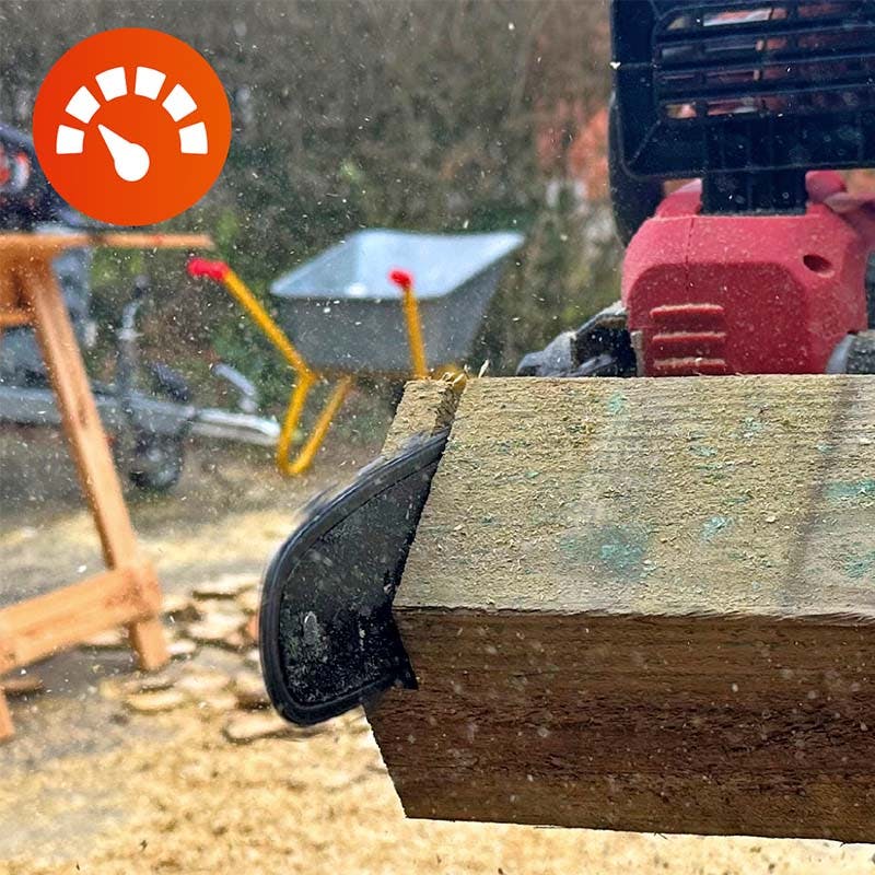 Metabon ketjusaha on laadukas kone, jossa on paljon raakaa voimaa. Ketju pyörii 22 metriä sekunnissa, mikä on nopeampi vauhti kuin monissa bensalla toimivissa moottorisahoissa ja selvästi nopeampi kuin verkkovirralla toimivien sahojen testivoittajalla viime vuoden testissä.
