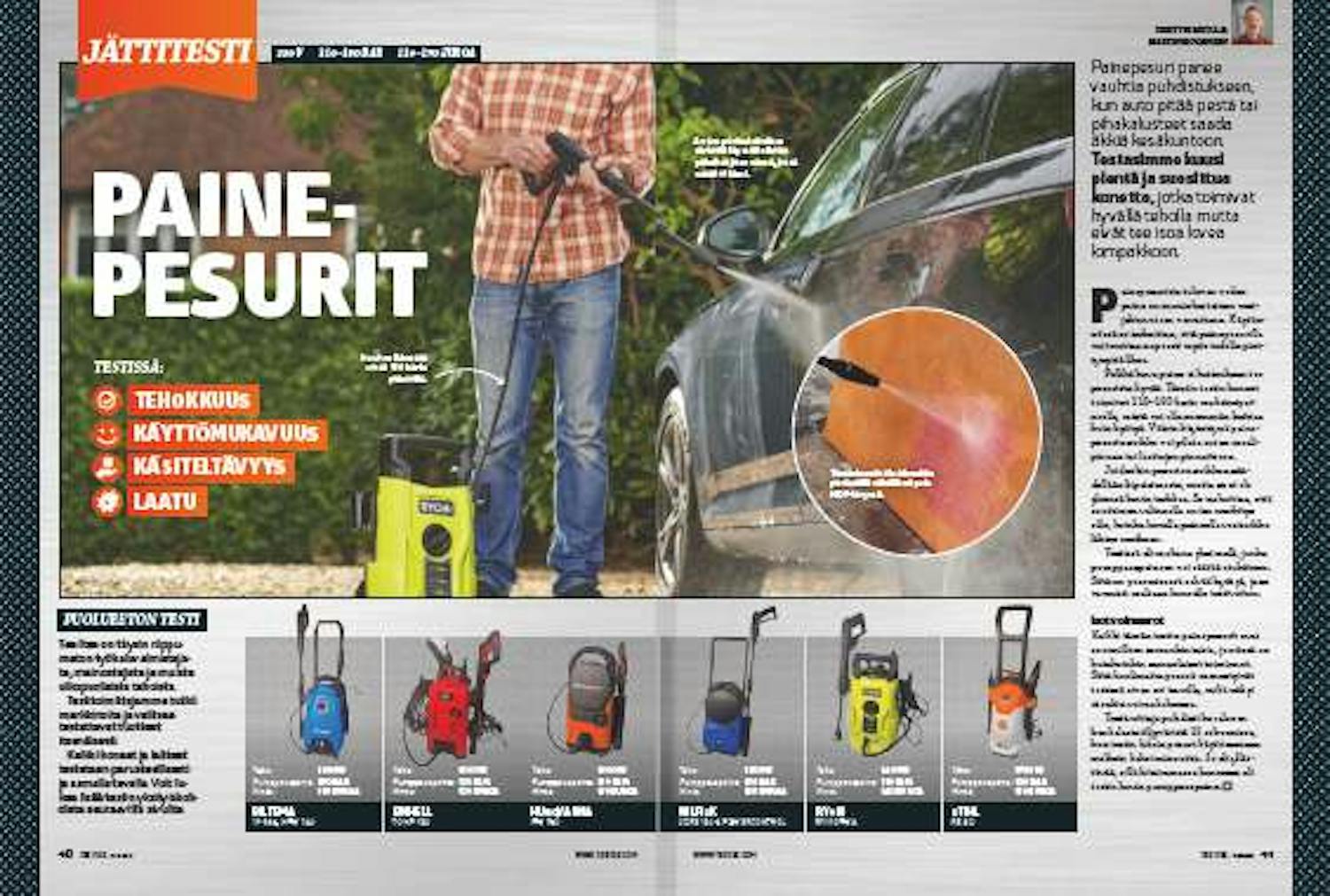 Pelkkä kova paine ei kuitenkaan tee pesurista hyvää. Tämän testin koneet toimivat 110–150 barin maksimipaineella, mistä voi olla enemmän haittaa kuin hyötyä. Väärin käytettynä painepesurin suihku voi pilata auton maalipinnan tai laattojen pinnoitteen.