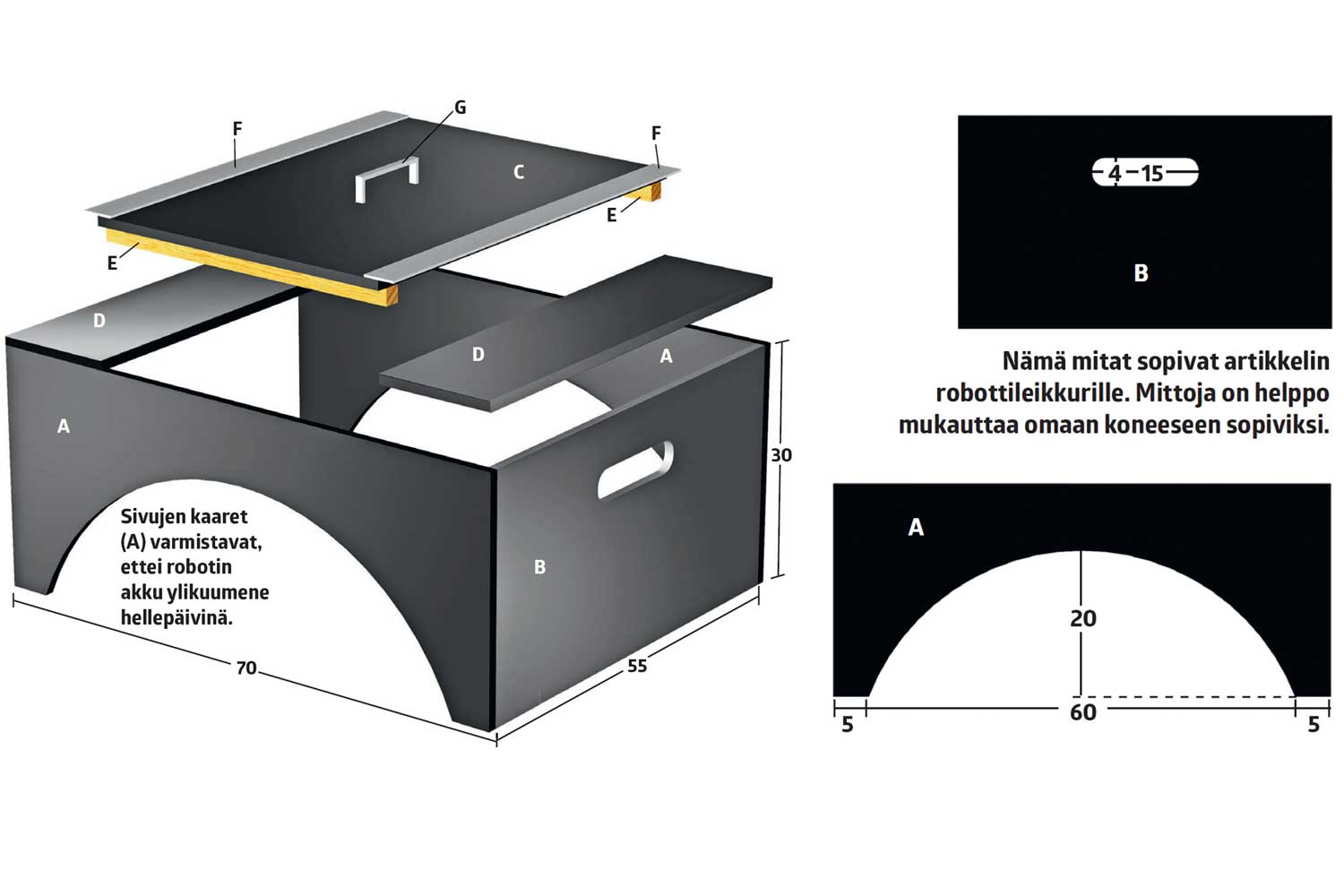 - 2 sivulevyä (A), 30 x 70 cm