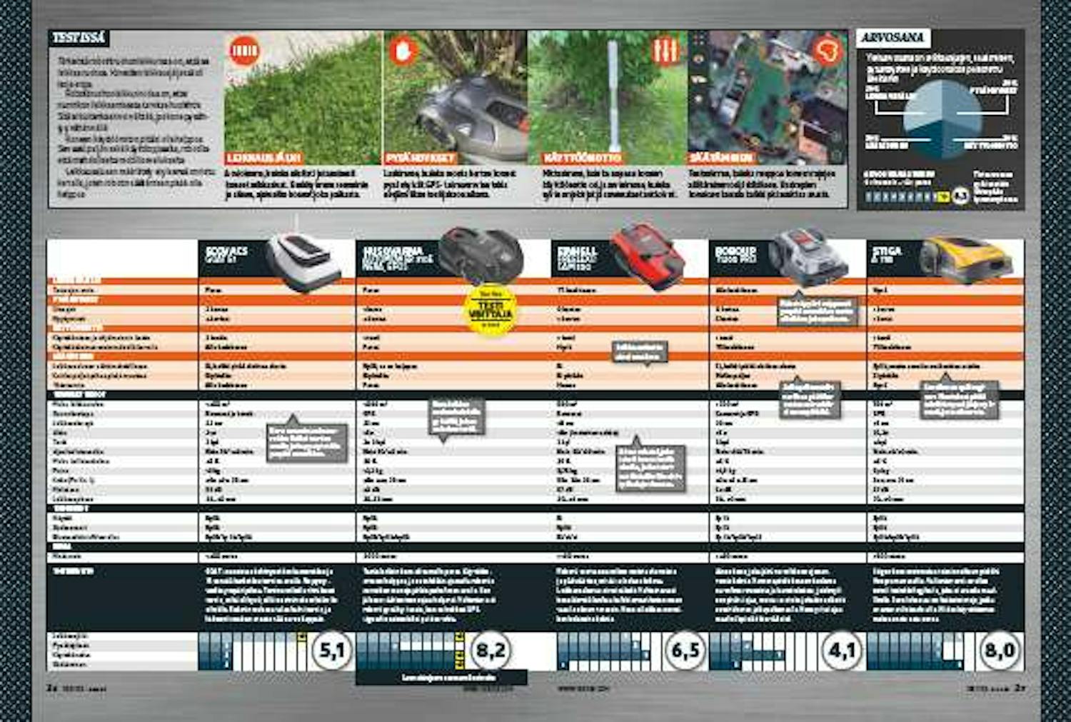 Hyväksi ostokseksi valittu kone oli mukana vuoden 2023 robottiruohonleikkuritestissä. Arviointikriteerit olivat vähän erilaiset, mutta kone olisi voittanut tämän testin kirkkaasti, jos se olisi ollut mukana. Kone ei pysähtynyt testijakson aikana kertaakaan, ja se maksaa vain noin 800 euroa.