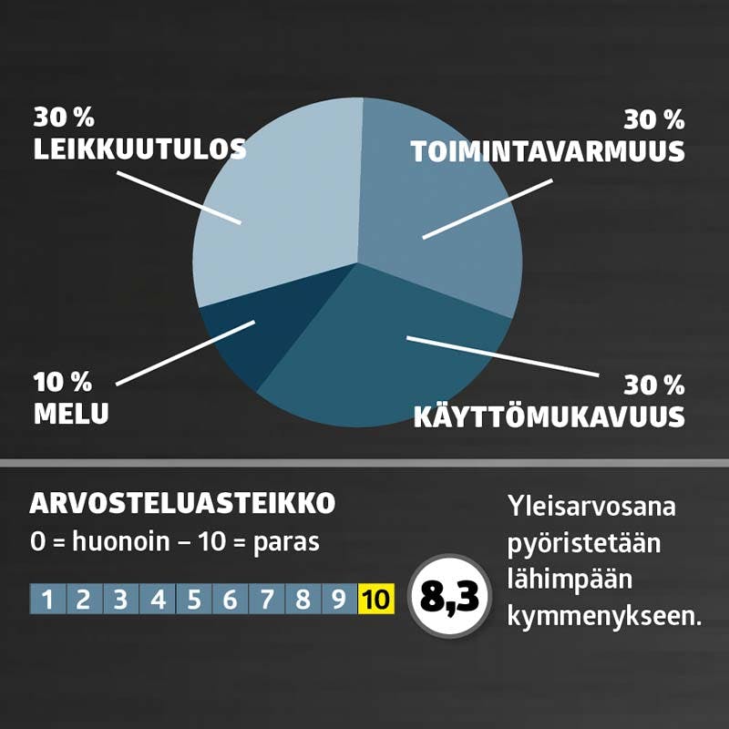 Robottiruohonleikkureita testataan ja arvioidaan näillä neljällä osa-alueella: Leikkuutulos, toimintavarmuus, käyttömukavuus ja melu.