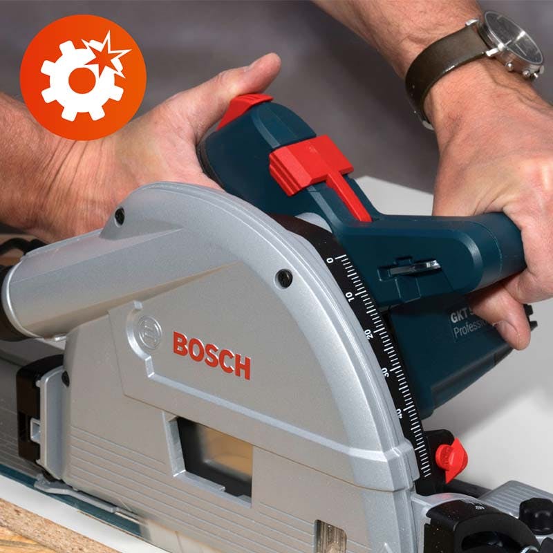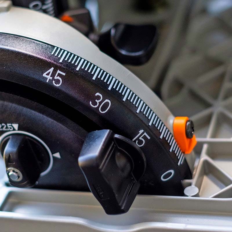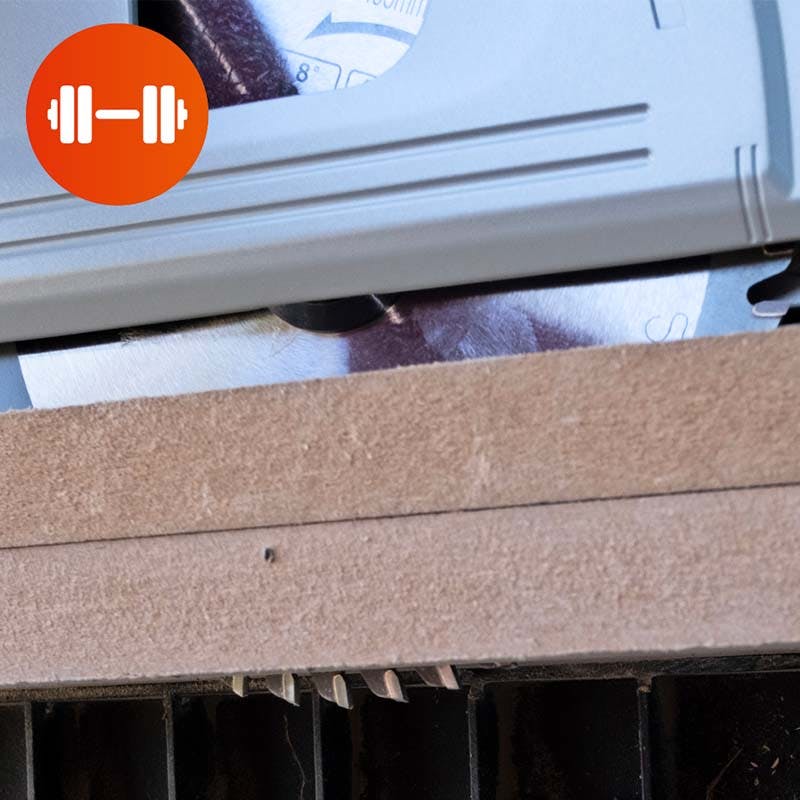 Syvyysrajoittimessa on kaksi asteikkoa, joista toinen on tarkoitettu ohjainkiskon kanssa sahaamiseen. Nopeutta ei voi säätää, mutta moottorin 1 200 watin teho riittää terän pyörittämiseen 56 millin syvyydellä. Saha toimii hyvin, ja upotus toimii tasaisesti. Koneen yleinen laatu ja toiminnot eivät yllä parhaiden mallien tasolle, mutta sitä ei huomaa lopputuloksesta.