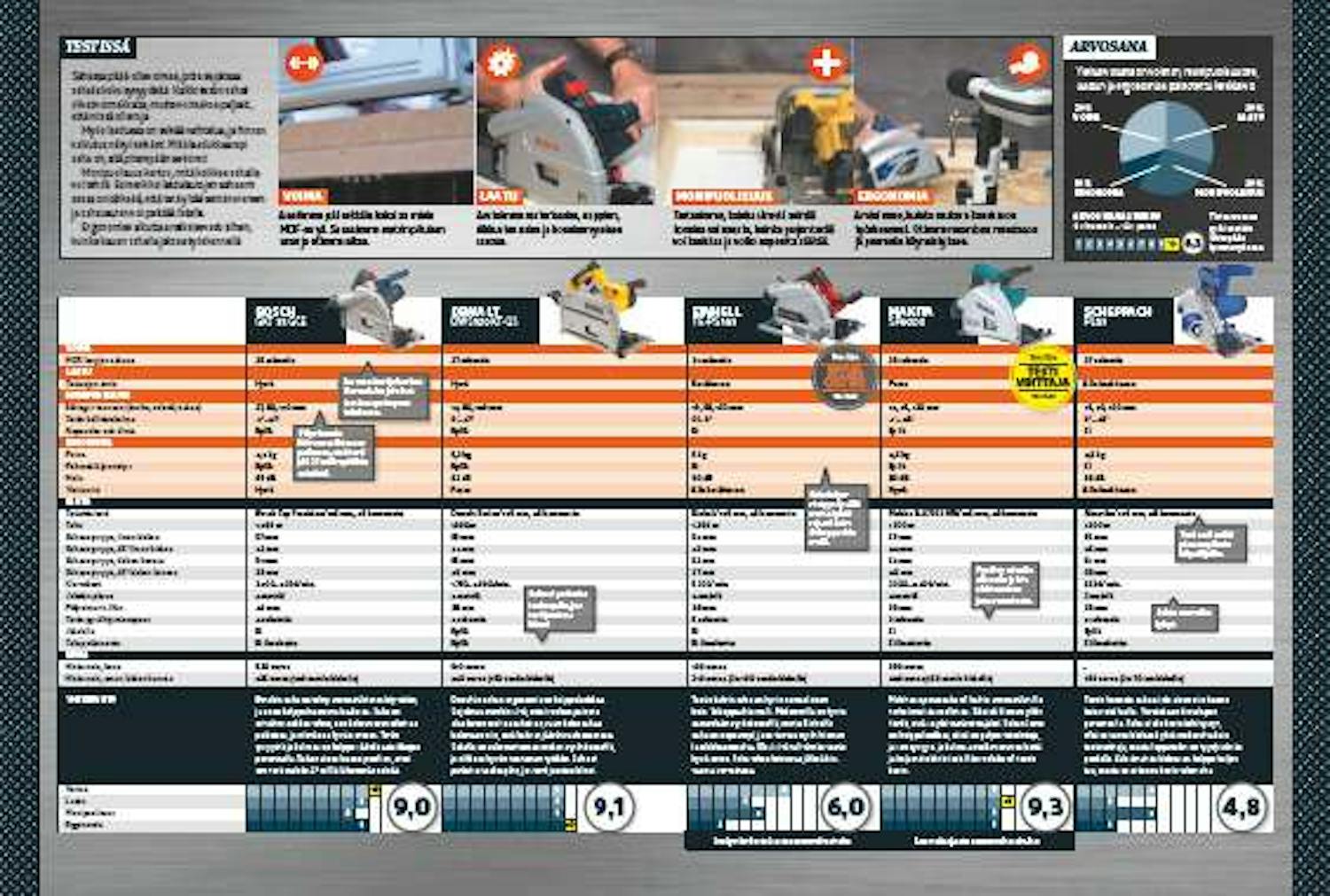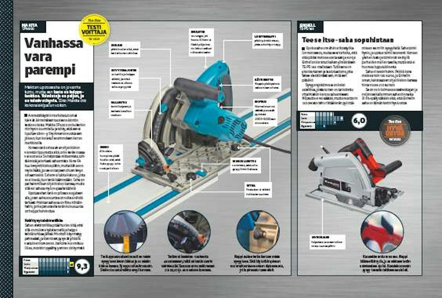 Ammattikäyttöön tarkoitetut sahat kävivät äärimmäisen tasaisen väännön testin voitosta. Makita SP6000 on kuitenkin niin hyvin suunniteltu ja tehty, että se vei lopulta voiton – yli kymmenen vuotta sen jälkeen, kun kone tuli ensimmäisen kerran markkinoille.