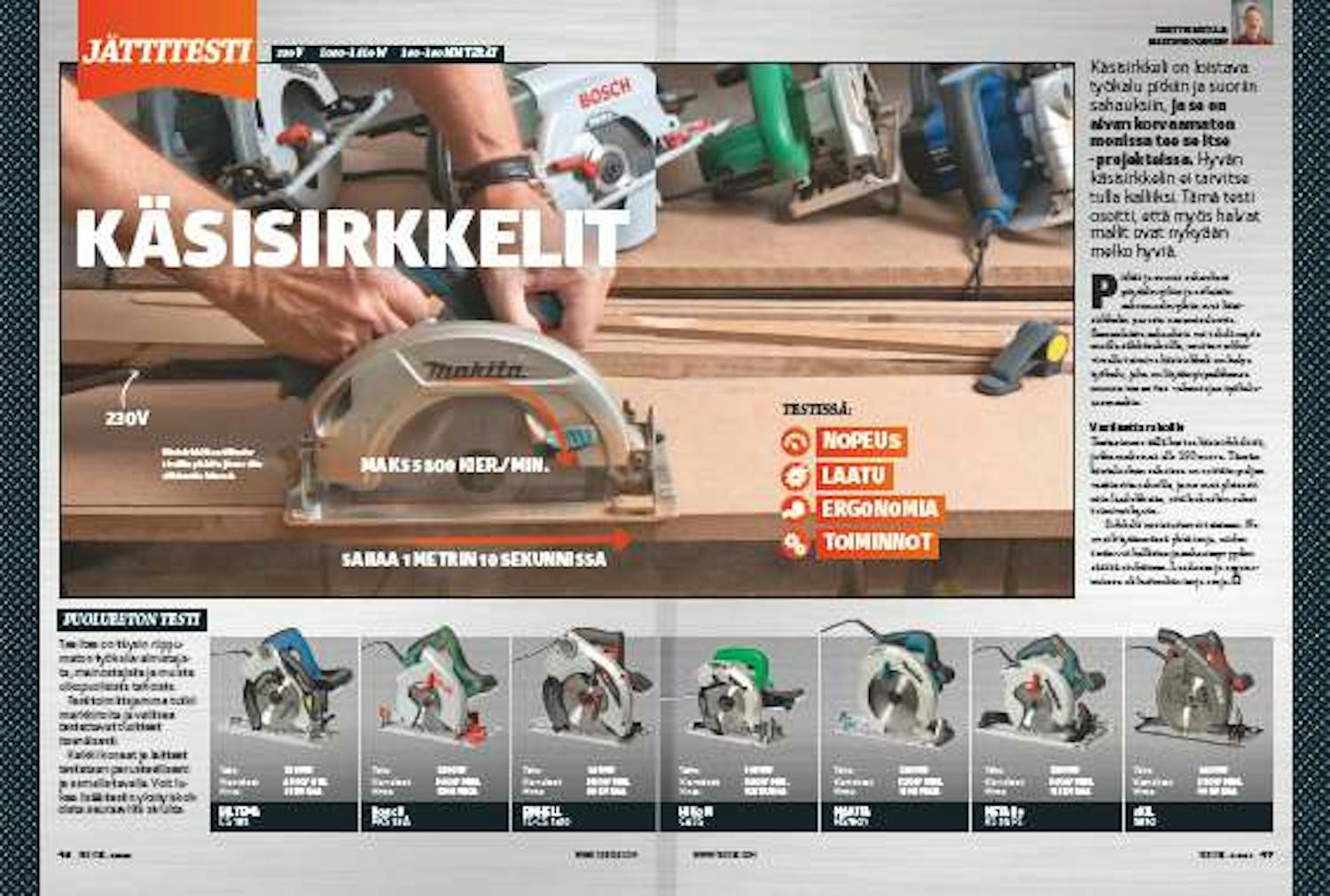 Käsisirkkelin pitää olla niin vahva, että sillä saa jotain aikaan. Testasimme koneiden voimat ja nopeuden sahaamalla niillä 24 milliä paksua MDF-levyä.