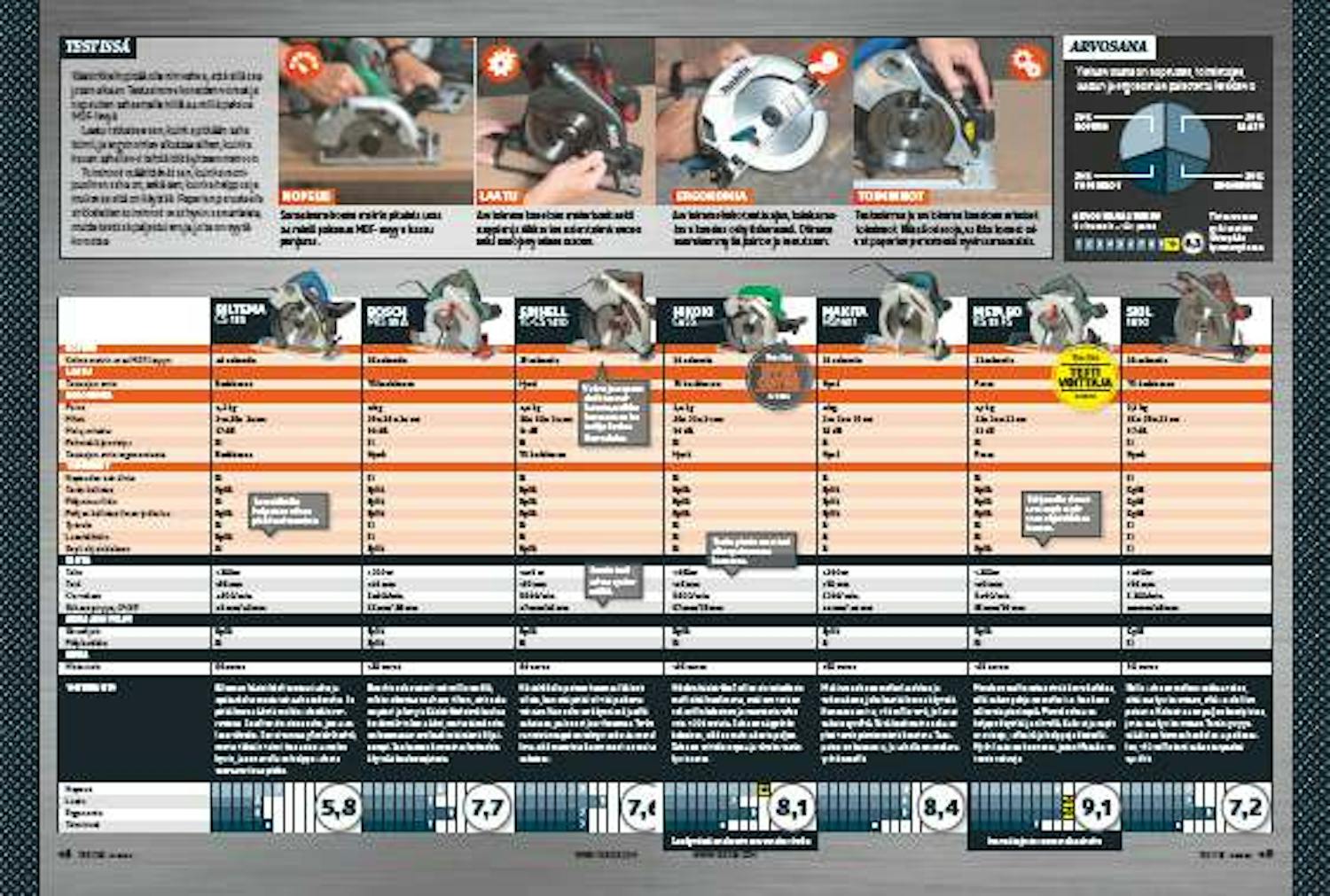 Hikokin käsisirkkeli kellotti testin nopeimman tuloksen 24 milliä paksun MDF-levyn sahaamisessa siitä huolimatta, että kone on pieni ja toimii 165 millin terällä. Myös 1 050 watin teholla toimiva moottori oli testin vaatimattomimpia.