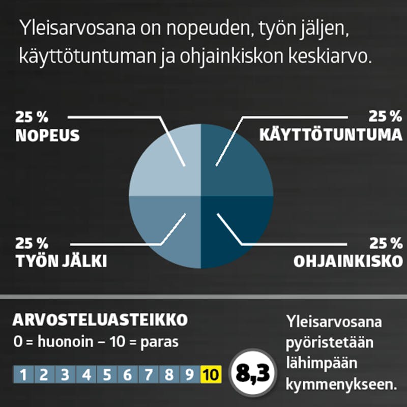 Käsisirkkelit testataan ja arvioidaan näillä neljällä osa-alueella: Nopeus, työn jälki, käyttötuntuma ja ohjainkisko.