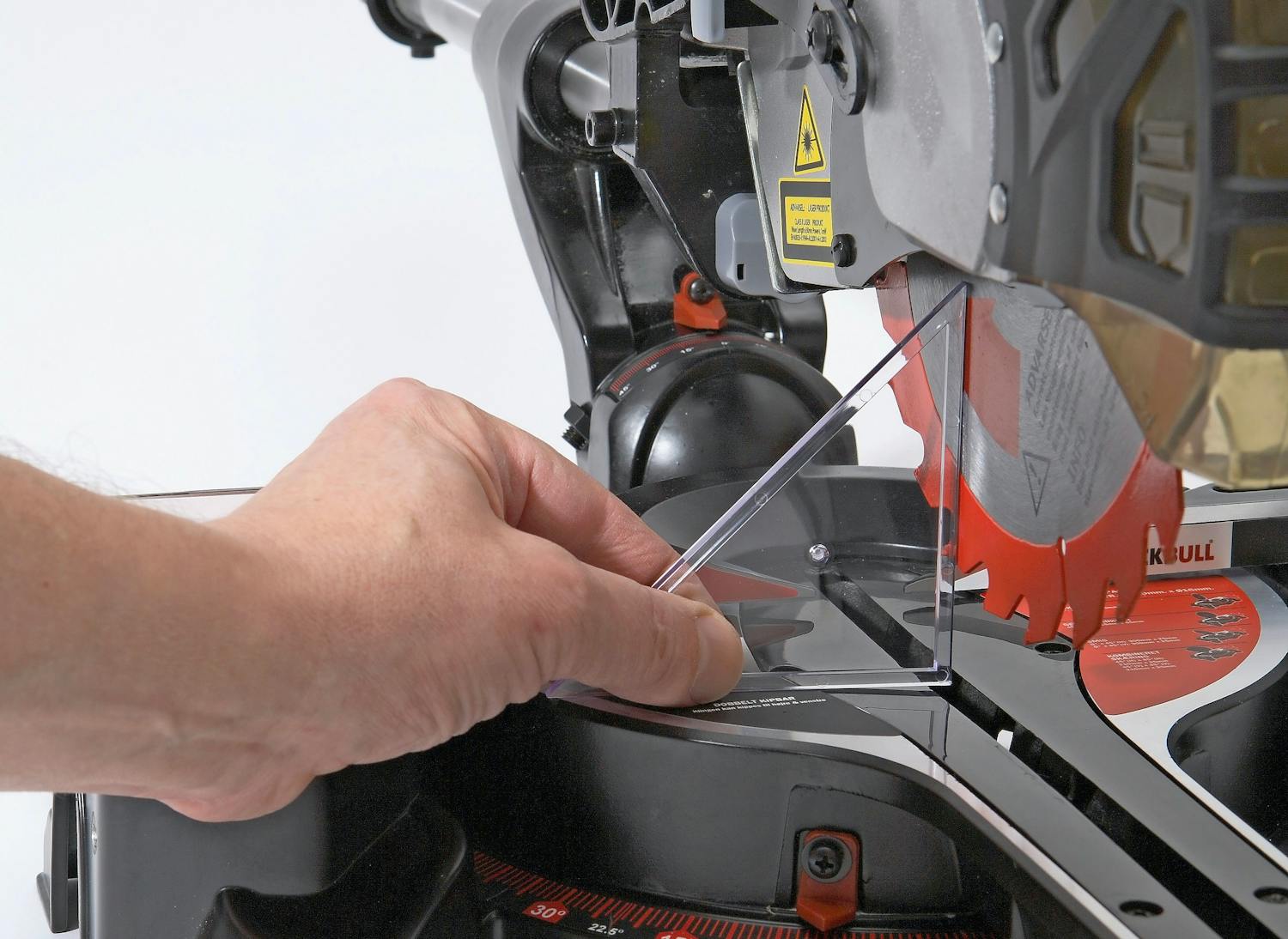 Katkaisu- ja jiirisahojen terät säädetään yleensä valmiiksi tehtaalla. Oletamme, että terä on kiinnitetty pystysuoraan asentoon asetusruuvilla ja lukkomutterilla. Liikkuvia osia tutkimalla selvität, miten terän asetus toimii ja mitä ruuveja säätämällä saat terän pystysuoraan. Tarvitset kulman määrittämiseen tarkan suorakulman, joka pysyy samanaikaisesti sahapöytää ja terää vasten. Tehtävään sopii esimerkiksi muovinen astelevy.