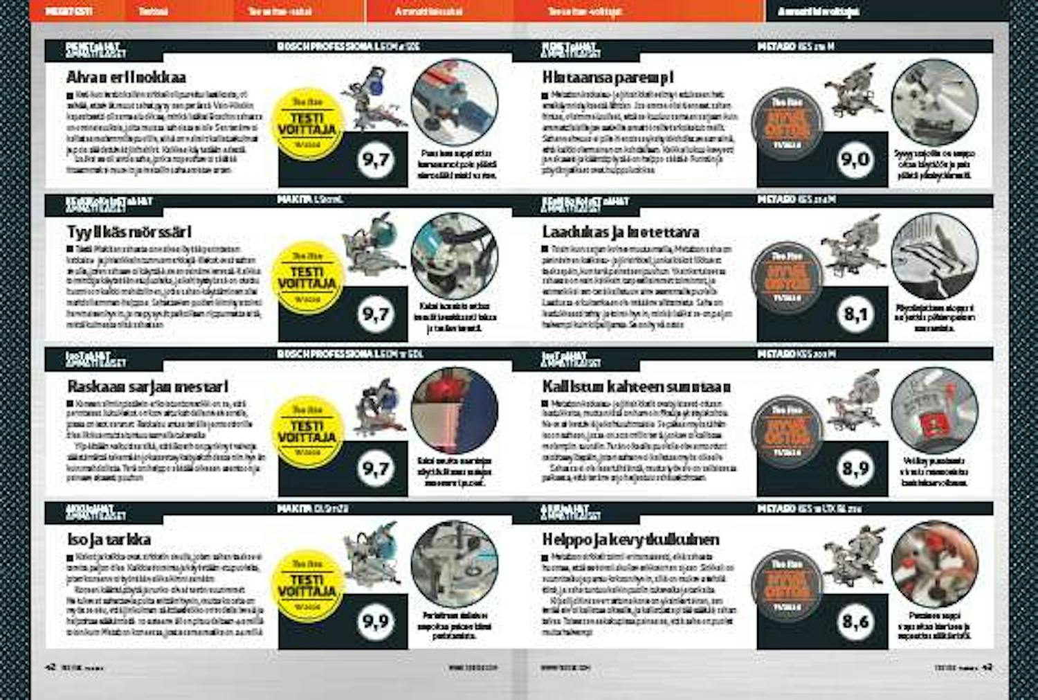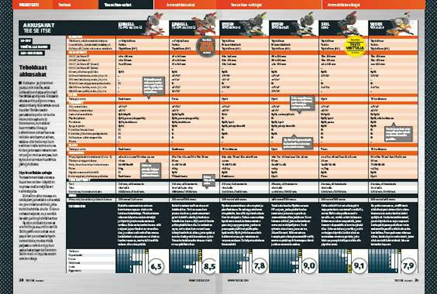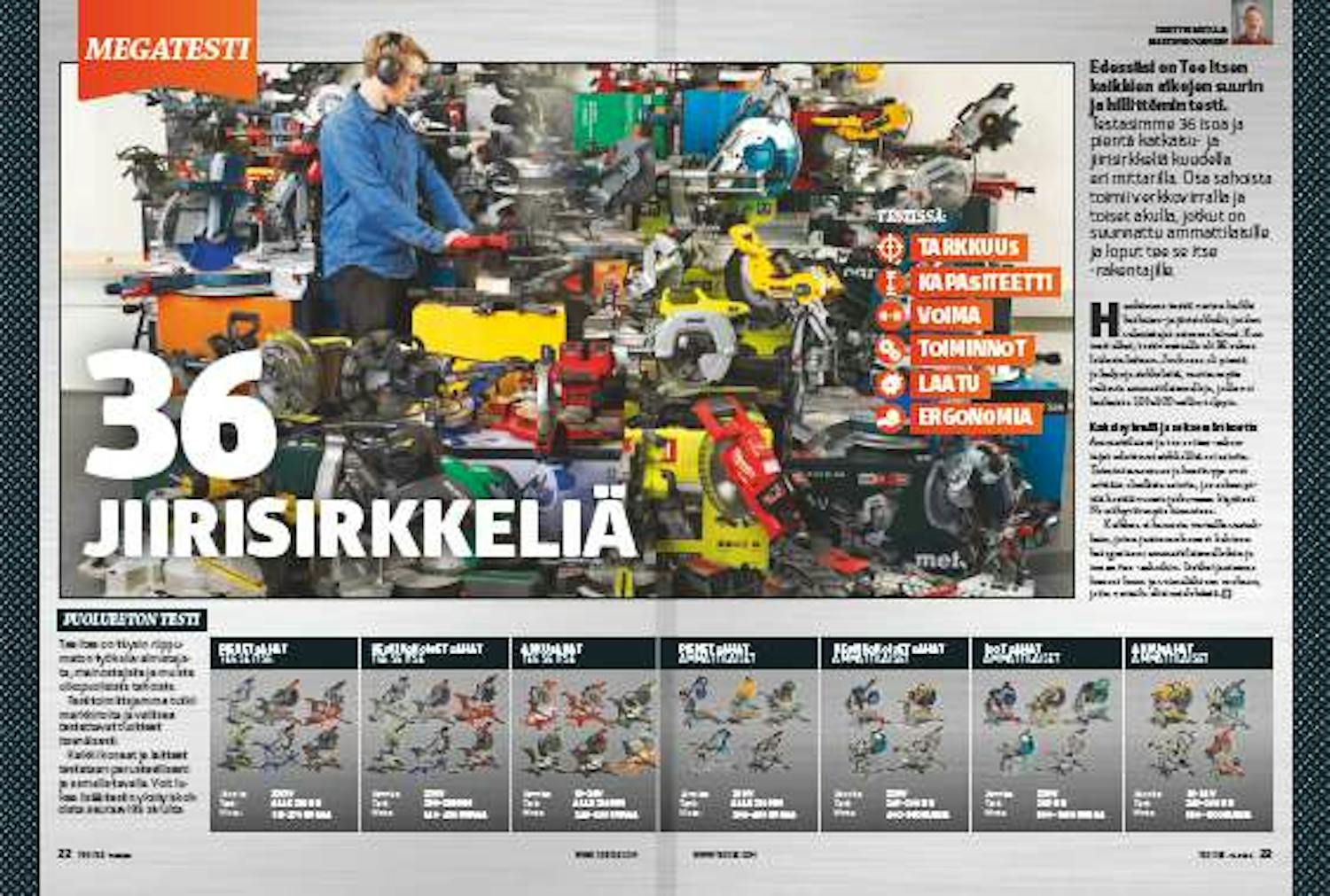 Tämä katkaisu- ja jiirisirkkelitesti on osa isompaa magatestiä, jossa testattiin 36 sahaa seitsemässä sarjassa.
