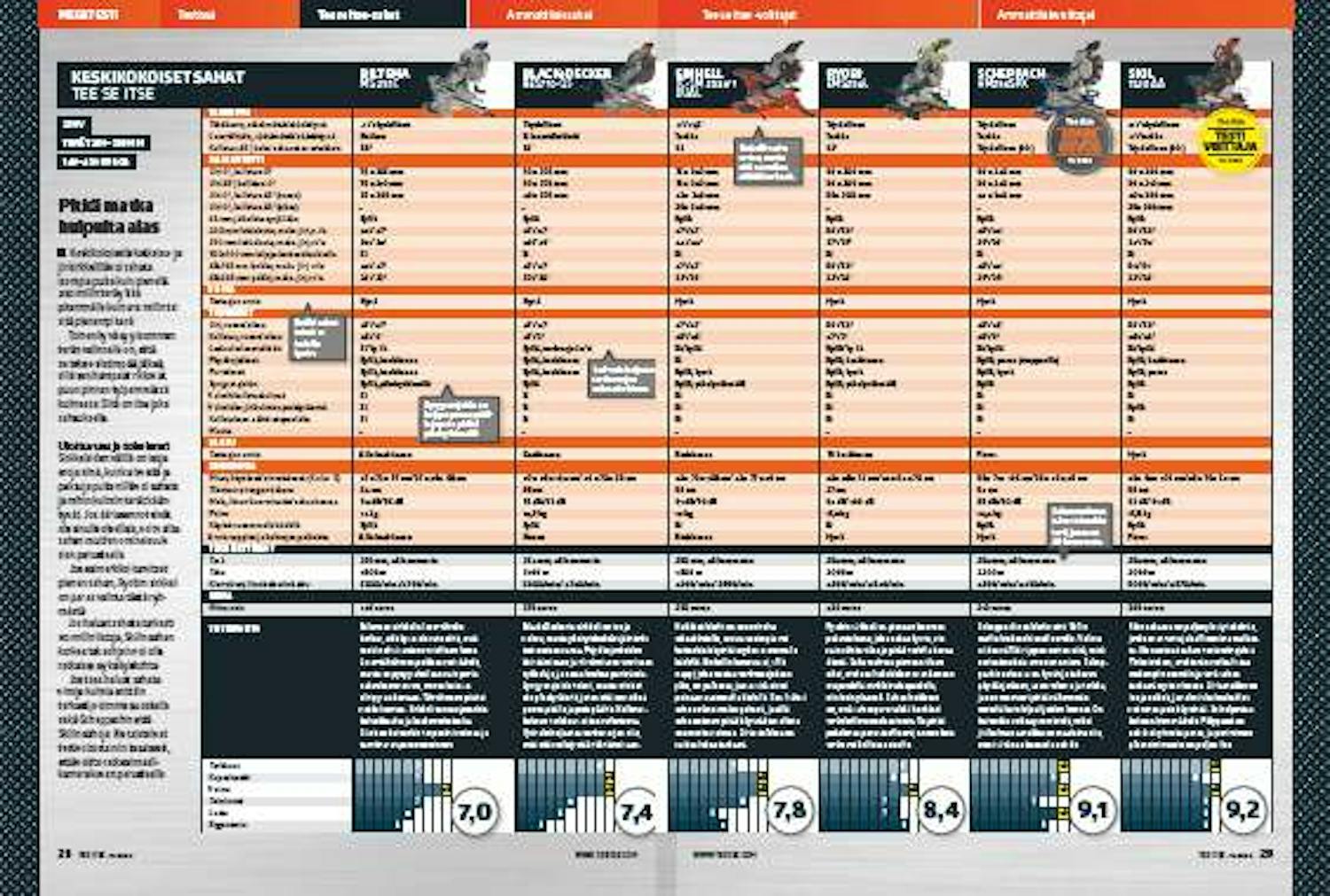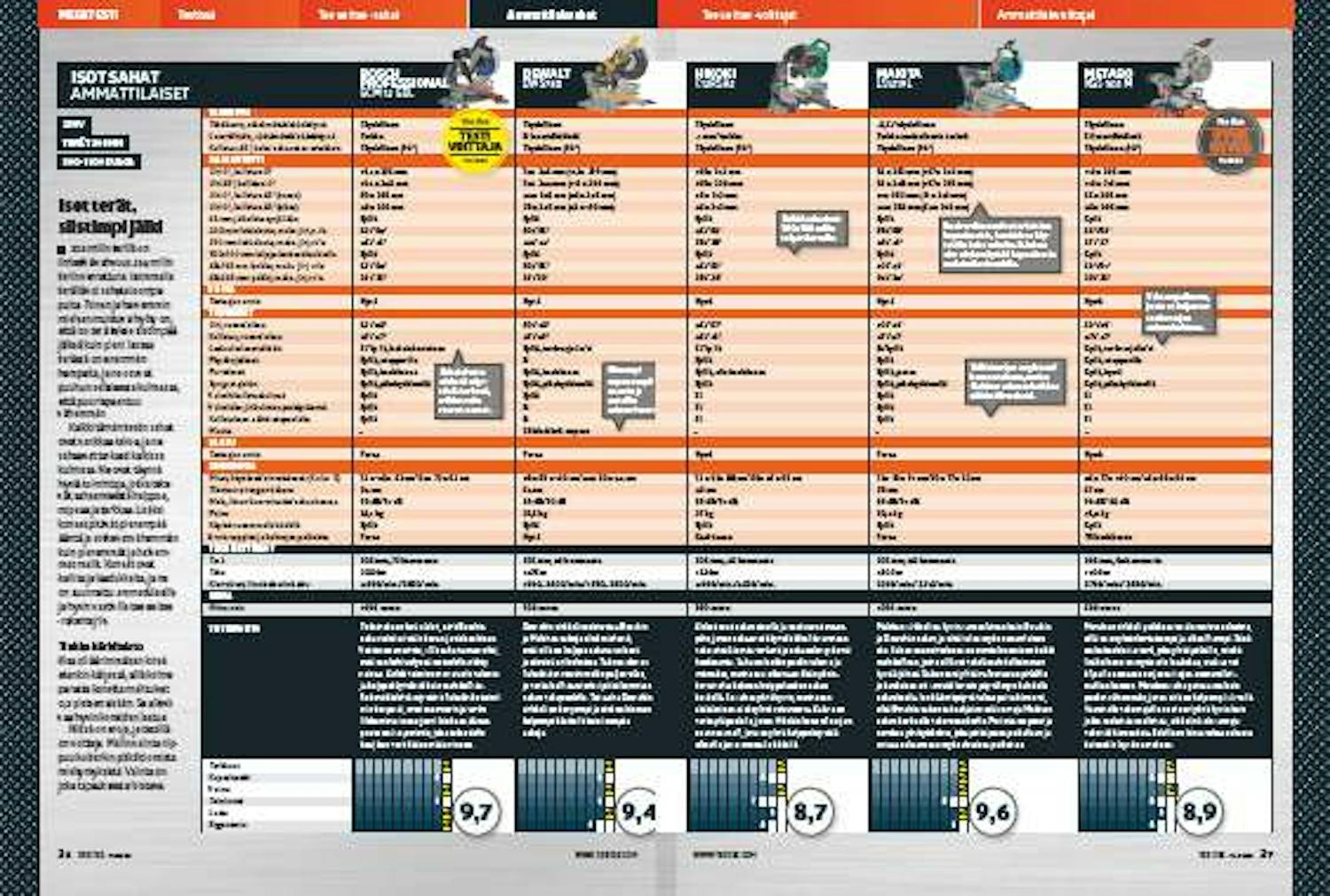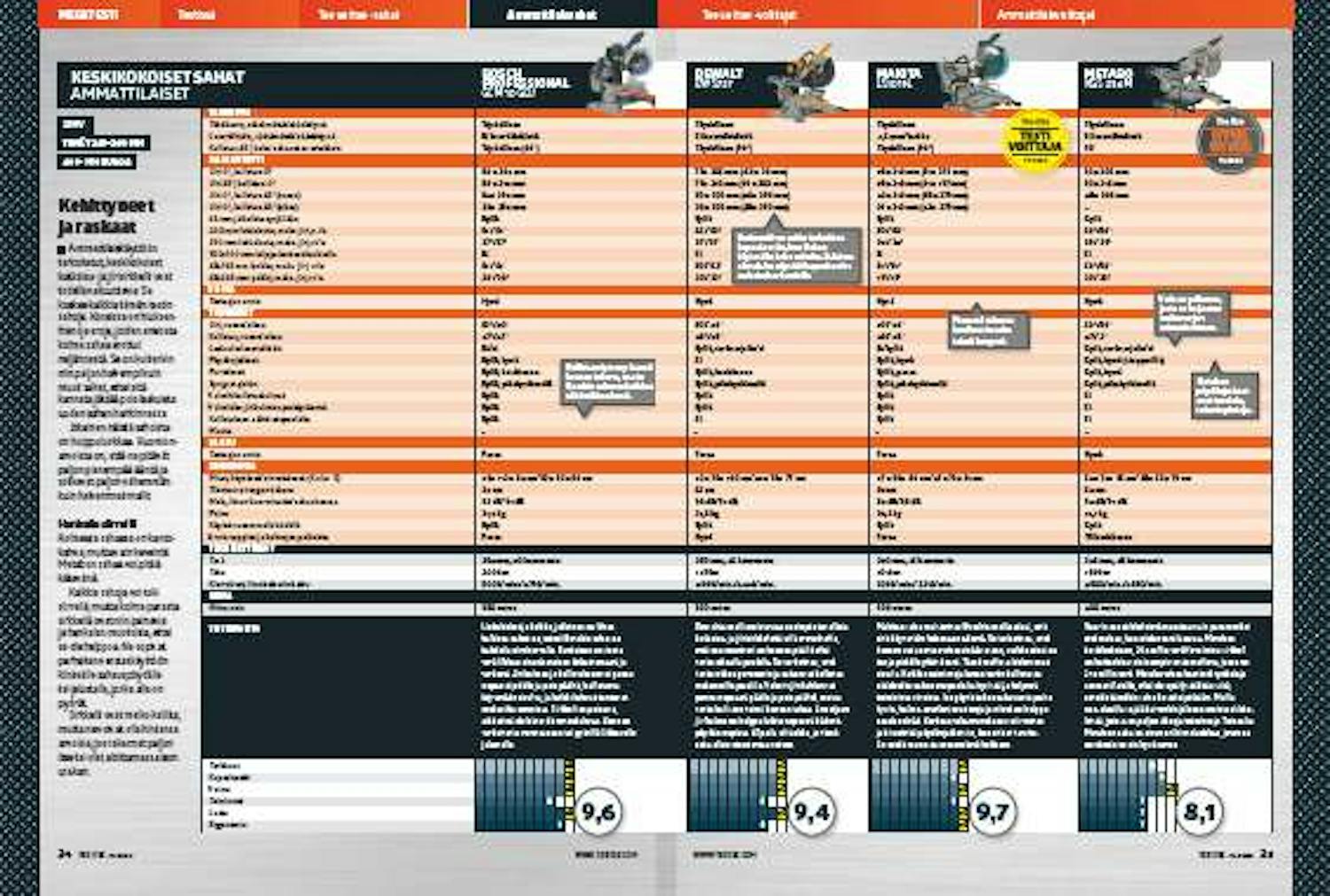 Tämä katkaisu- ja jiirisirkkelitesti on osa isompaa magatestiä, jossa testattiin 36 sahaa seitsemässä sarjassa.