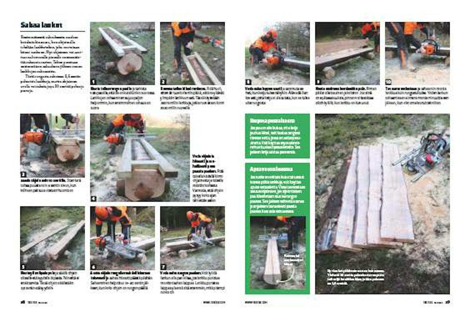 Tee sama uudestaan ja sahaa niin monta lankkua kuin rungosta tulee. Yhden lankun sahaamiseen ei mene monta minuuttia sen jälkeen, kun olet omaksunut tekniikan.