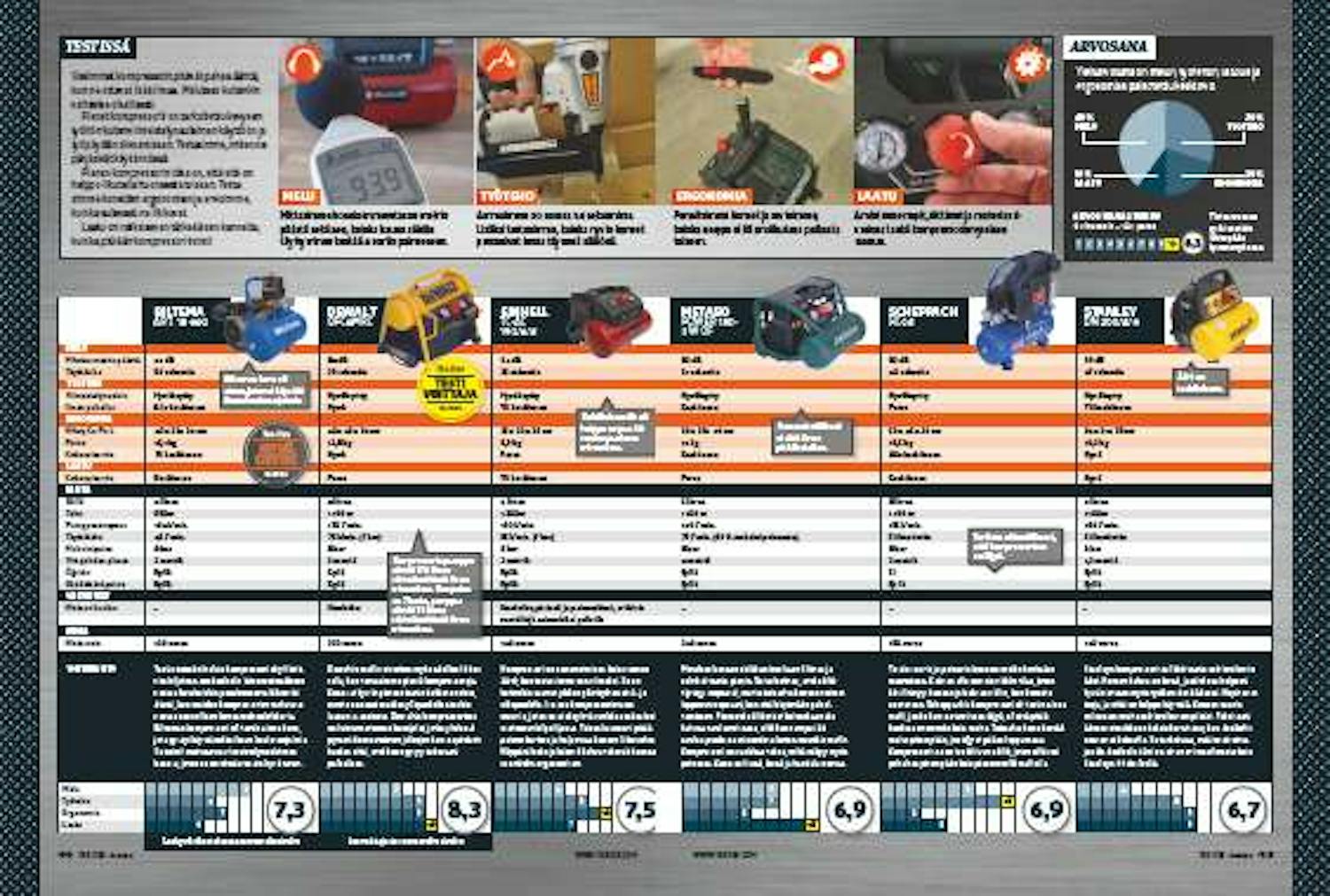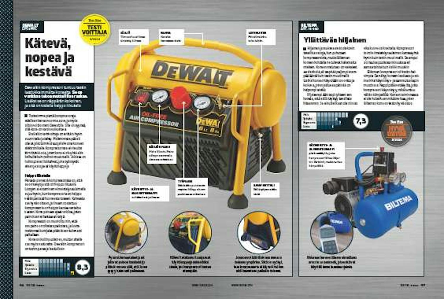 Kone on kalliinpuoleinen, mutta rahalle saa myös vastinetta. Dewaltin kompressori on testin paras ja laadukkain.