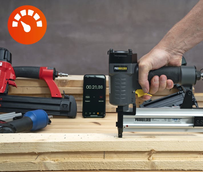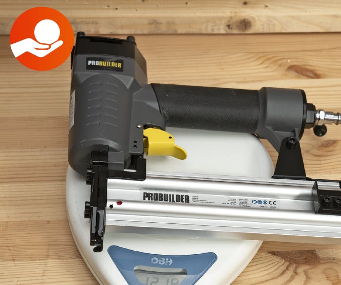 PROBUILDER 69350 kolkuttelee testivoittajan kannoilla. Naulain on pieni, sitä on helppo käyttää, ja se vaikuttaa kestävältä. Naulain on ominaisuuksiinsa verrattuna käsittämättömän halpa. Kone toimii nopeasti, ja sillä voi naulata melkein yhtä nopeasti kuin konetta ehtii siirtää paikasta toiseen. Naulain ei tehnyt nopeuskokeessa yhtään virhettä, mikä oli hyvä, sillä juuttuneen naulan irrottamiseen ei ole pikakonstia. Päin vastoin, koneesta pitää irrottaa koko naulausmekanismi ja neljä ruuvia, ennen kuin juuttuneeseen naulaan pääsee käsiksi. Konetta ei voi säätää mitenkään, mutta nopeus, toimintavarmuus ja edullinen hinta tekevät siitä hyvän ostoksen.