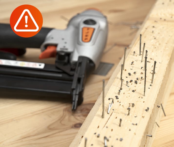 Joskus naulain ampuu kaksi naulaa kerralla tai naula vääntyy mutkalle. Toisinaan naula juuttuu koneen sisään. Mitä harvemmin niin käy, sitä parempi