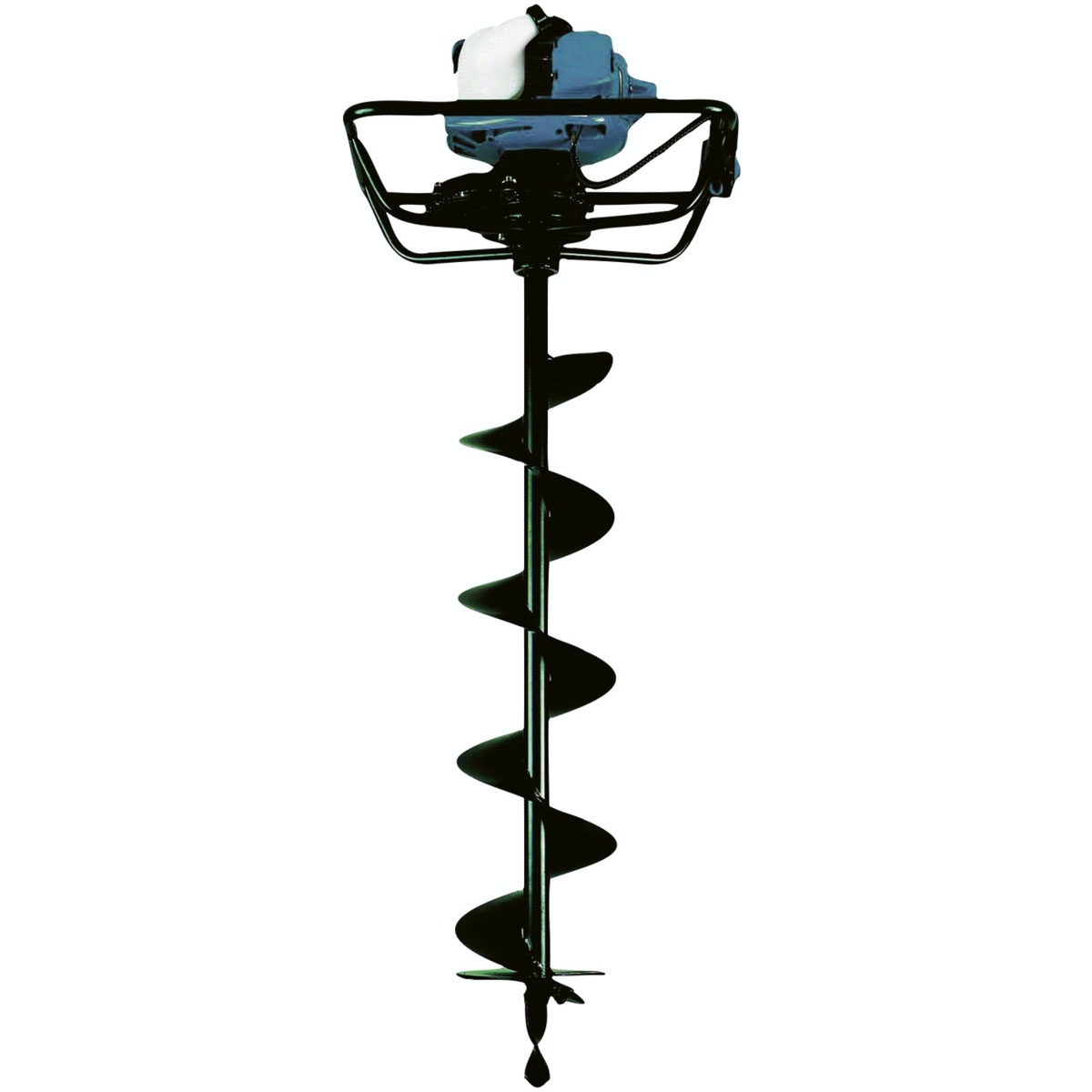 Moottorikaira todella pureutuu maahan! Jos laitteella ei osu kiviin ja juuriin, sillä voi porata 90 cm:n syvyyteen 15 sekunnissa – mutta maata ei saa nostettua pois. Poista maata kuopasta 15–20 cm:n välein, niin pääset 90 cm:n syvyyteen 4–5 toistolla vähällä lihasvoimalla. Jos pora osuu kiviin tai juuriin, pora pysähtyy, mutta laite ei.
