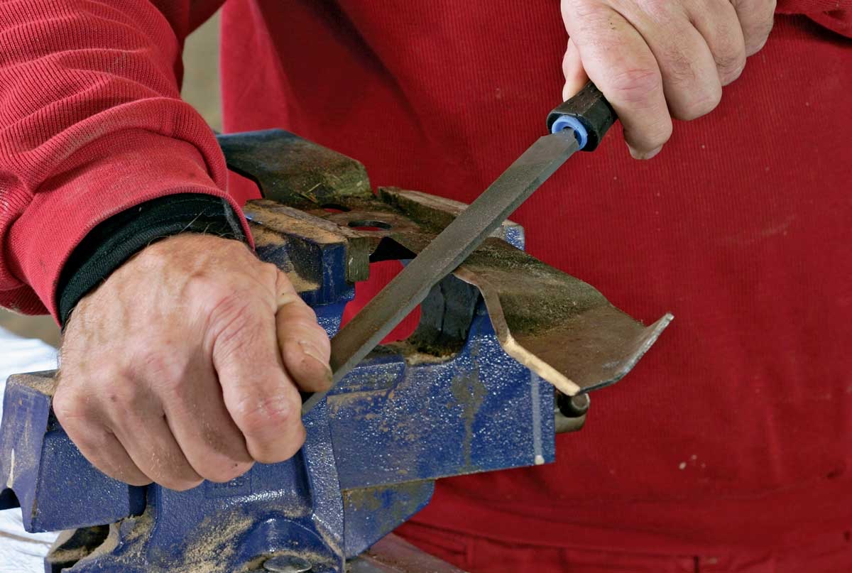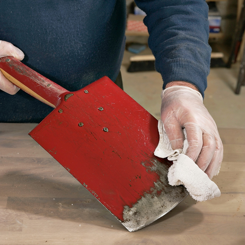 Kun on ensin puhdistanut lapion ja rautakangen, ne laitetaan päivän päätteeksi sateelta suo-jaan. Ihmeitä saa aikaan, jos säännöllisesti hioo välineiden terät ja käsittelee talven ajaksi sekä teräs- että puuosat öljyllä.