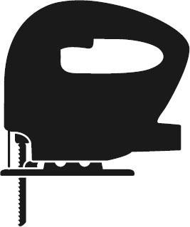 Työssä on helppo onnistua pistosahan ja kovapuuterän avulla. Yläpuolella näkyvän terän hampaat osoittavat vas takkaisiin suuntiin. Se tarkoit taa, että leikkauspinnasta tulee siisti, vaikka reikä sahataan levyn yläpuolelta. Levyyn ei tule rosoja tai tikkuja, kun reikä sahataan tarkasti ja rauhallises ti merkkiviivaa pitkin.