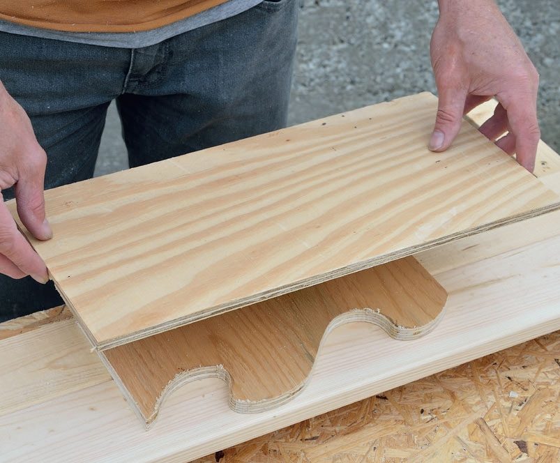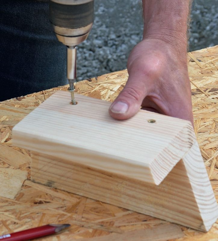 Sahaa kaksi laudanpätkää tai paksua vanerinpalaa sopiviin kulmiin. Käytä sirkkeliä, jotta sahauksista tulee tarkat. Kokoa osat yhteen parilla ruuvilla.
