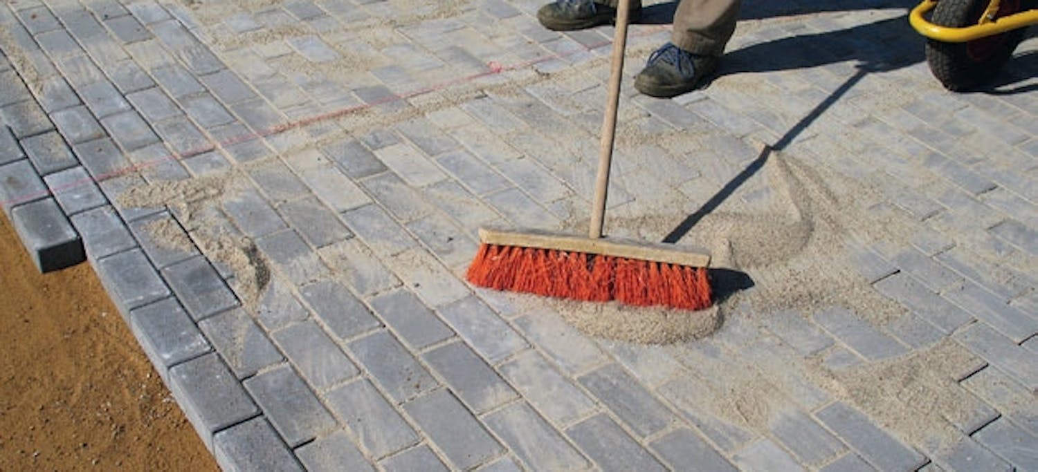 Saumaa kiveys sitä mukaa kun kivien asennus etenee. Näin vältät kulkua vasta asennetuilla kivillä. Kivet asennetaan 5 mm:n ilmaraoin, jotta rakoihin saadaan saumaushiekkaa tasaamaan tiivis ja jous-tava pinta. Käytä uunikuivat-tua hiekkaa. Hiekka ei saa ”rakentua silloiksi”, vaan sen pitää painua vapaasti alas.
