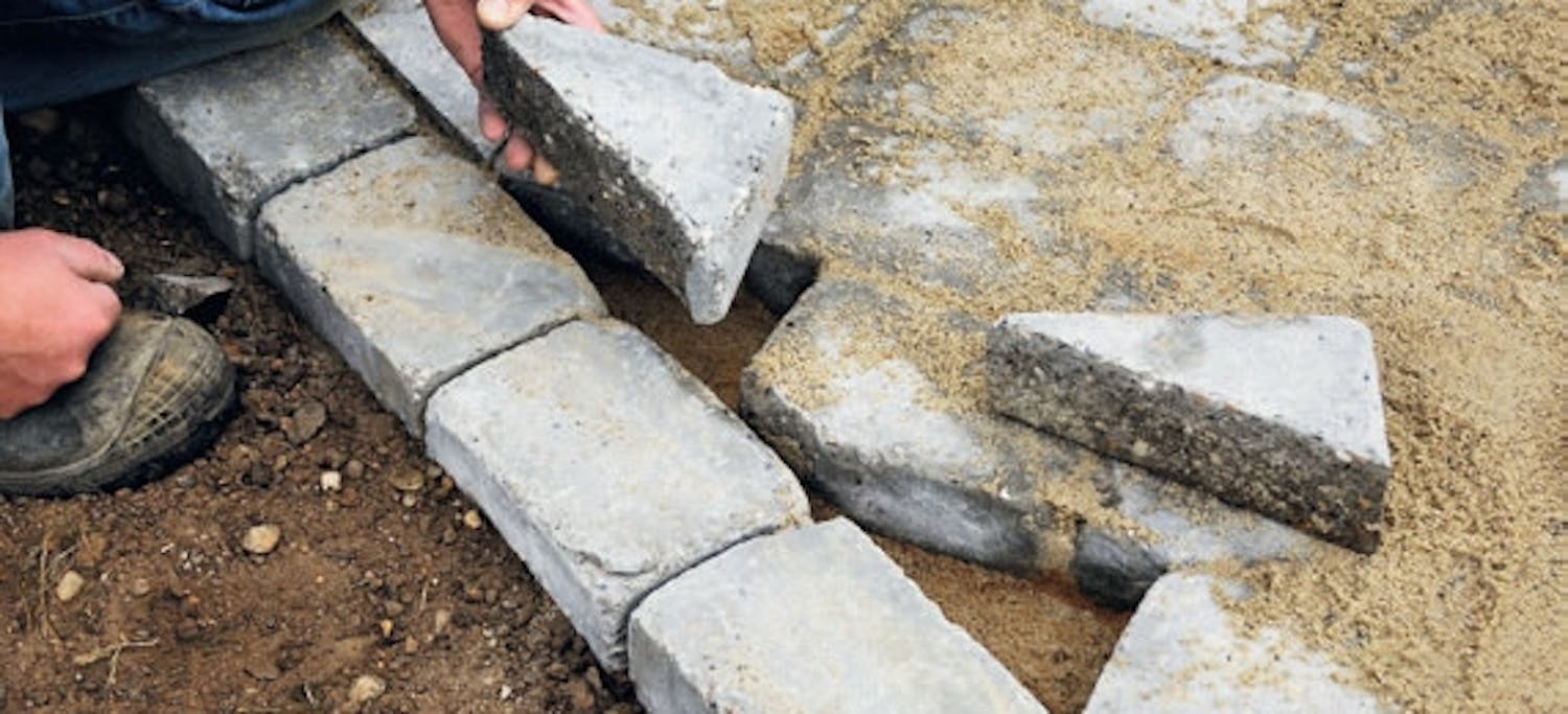 Kun asennet betonikiviä tai -laattoja, ota use-ampi kuormallinen samanaikaisesti, mielel-lään vähintään kolme kuormalavallista. Sekoita kivet, niin ne värierot, joita eri kiviker-roksissa ja -kuormissa on, muo-dostavat 28 päällysteeseen hienon kuvion. Jos et sekoita kiviä, ken-tistä tulee hieman eri sävyisiä.