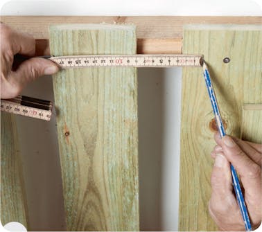 Merkitse loppulautojen paikat. Merkitse, mihin laudan reuna tulee. Säätele lautavälejä niin, että saat seinän molempiin päätyihin täysleveät laudat.