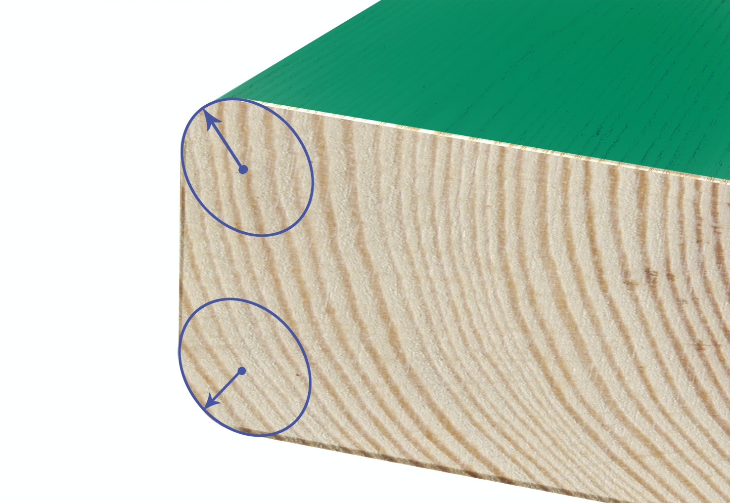 Täysin terävän reunan uloimpaan kohtaan jää vain hyvin ohut maalikerros, kun taas tasaisiin pintoihin tulee maalia paljon paksummin. Siksi reunoja kannattaa pyöristää parin millimetrin verran ennen maalausta.