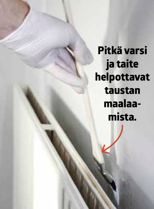 Älä kuivaa pensseliä maalipurkin reunaan, sillä silloin maali kovet- tuu helposti ja kokkareet voivat pudota maalin sekaan. Kuivat maalimöykyt näyttävät pahalta vastamaalatussa seinässä.