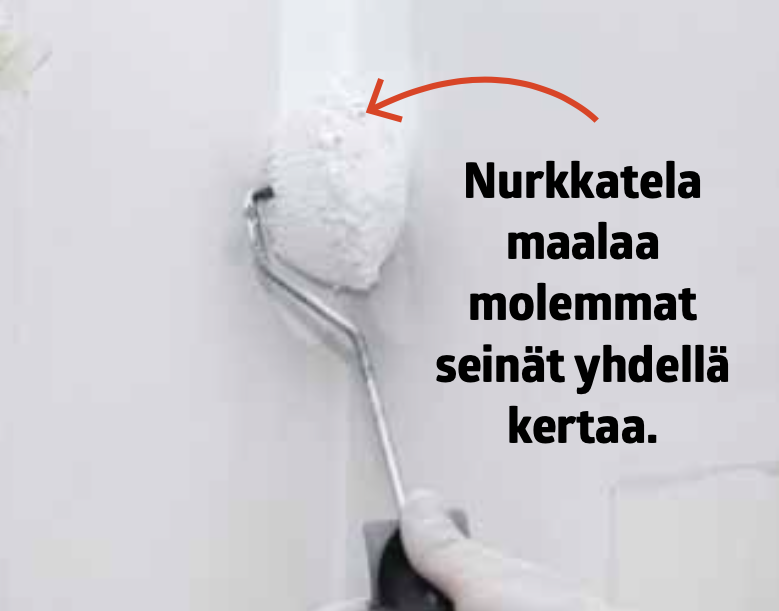Nurkissa ja katon rajassa olevat halkeamat kannattaa peittää maalattavalla akryylimassalla. Akryylimassa parantaa maalausjälkeä. Sauma tasoitetaan samaan tasoon ympäröivän pinnan kanssa. Akryyli on helpoin tasoittaa kumihanskalla suojatulla sormella.