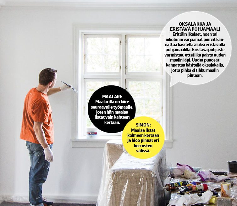 Isoissa maalausprojekteissa on pakko pitää taukoja. Ensimmäisen maalikerroksen kuivumista pitää odottaa ennen toisen maalaamista, eikä öitä kannata käyttää maalaamiseen.