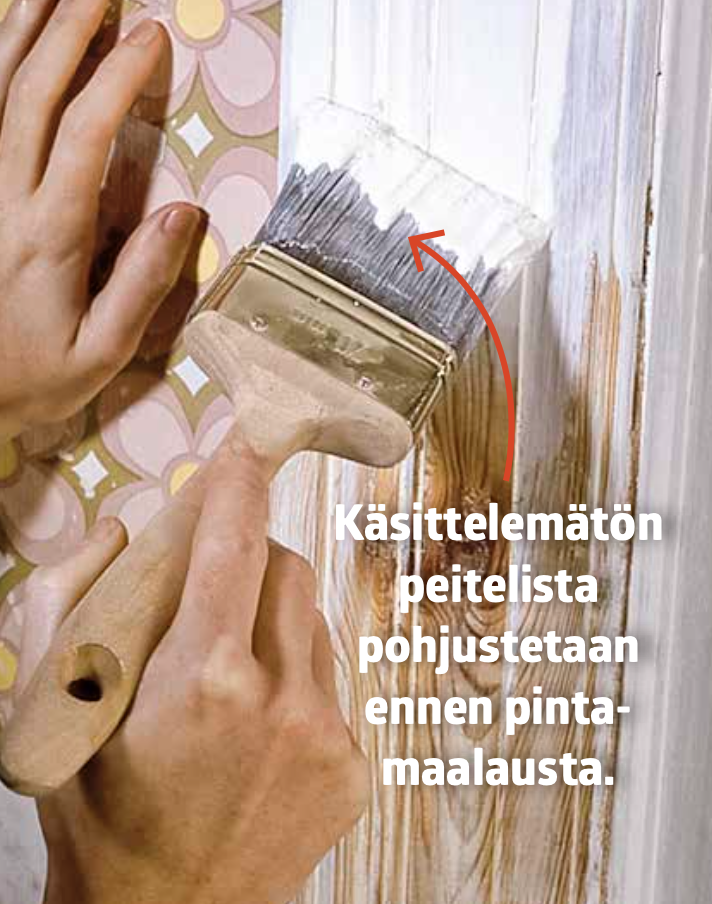 Jalka- ja peitelistojen sekä ikkunaristikoiden kaltaisten pienten puuosien maalaami- sessa on tärkeää, että pensselillä voi maalata teräviä reunoja. Terävät reunat on helpointa tehdä pyöreällä pensselillä, jossa on kärkeä kohti kapenevat harjakset.