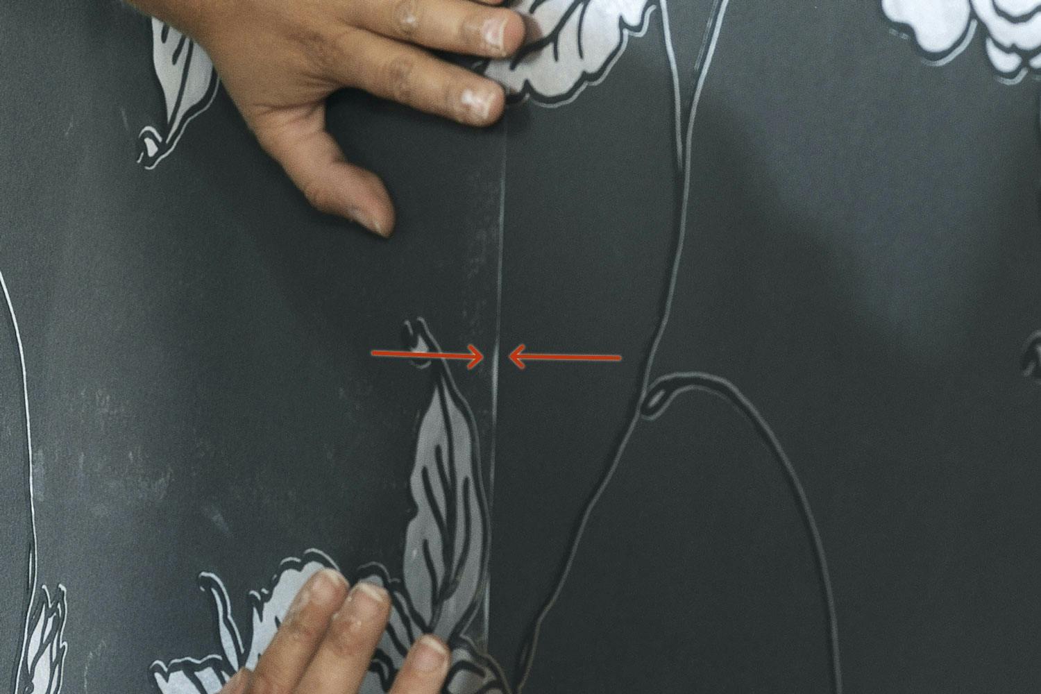 Kuviotapettivuodat on työnnettävä tiiviisti toisiaan vasten. Tapaa kutsutaan puskusaumaukseksi.