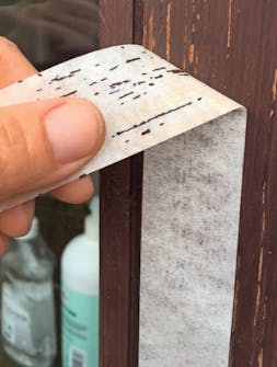 Jos et tiedä, onko vanha maali tarpeeksi tiukasti kiinni seinässä, voit tarkistaa asian maalarinteipillä. Paina teippi lujasti kiinni kiinni puuhun ja vedä se irti. Jos maali lähtee teipin mukana, pohja ei ole tarpeeksi hyvässä kunnossa. Silloin puu pitää puhdistaa paremmin, mahdollisesti kokonaan.