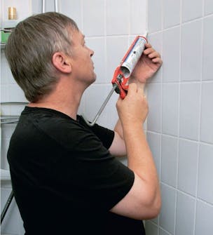 Täytä sauma silikonilla. Leikkaa putkilon päähän sauman levyinen reikä. Täytä sauma siten, että massa jää hieman koholle. Muista vapauttaa liipasin, ennen kun lasket pistoolin kädestä. Aseta kärki pahvin tai paperinpalan päälle, jotta kärjestä valuva silikoni ei sotke paikkoja.