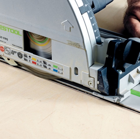 Jos puulevyssä on melamiinipinnoite, levyä ei saa halkaista yhdellä viillolla. Kun levyn läpi sahaa, sahan hampaat ovat suorassa kulmassa melamiinin alla, ja tällöin on riskinä, että saha irrottaa reunasta pieniä paloja. Säädä sahaa niin, että se leikkaa tarkasti vain ohuen pinnoitteen läpi, ja sahaa koko levyn läpi vasta tämän jälkeen, niin levypintaan ei tule lovia.