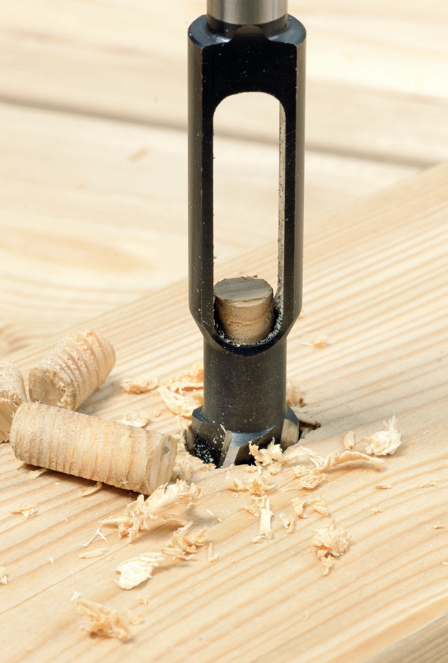 Lattiassa olevan reiän voi hyvin paikata pyörökepin palalla. Korjauksen kuitenkin näkee, sillä pyörökepin syyt kulkevat väärään suuntaan. Tulppaporalla ja sopivalla poranterällä voit itse tehdä puutulpat, joiden syyt kulkevat samaan suuntaan kuin lattiassakin. Voit valita puusta sellaisen kohdan, jossa syykuvio muistuttaa korjauskohdan kuviota. Korjauksesta tulee lähes huomaamaton.