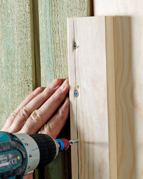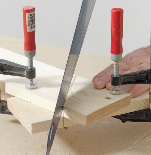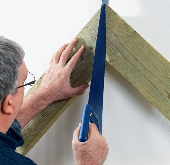 Jos liitos ei ole aivan tiivis – esimerkiksi tuulilaudat eivät yhdisty harjalla täysin tiiviisti –, kiinnitä kappaleet parilla ruuvilla ja viillä liitos käsisahalla auki. Jos yksi viilto ei riitä, voit painaa lautoja yhteen ensimmäisen viillon jälkeen ja sahata sitten uudestaan. Kun kaksi viistopäätyä ovat samansuuntaiset ja liitos on tiivis, laudat painetaan tiukasti yhteen ja kiinnitetään lopullisesti.