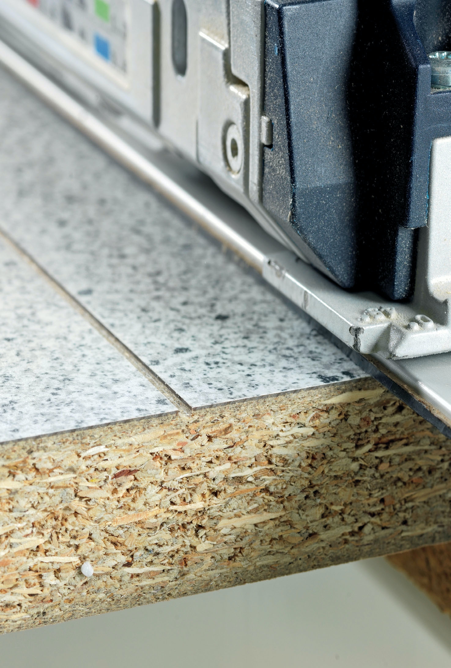 Keittiön kaapin alla oleva sokkeli saattaa olla vino, vaikka sitä ei huomaa. Päädyissä, joissa sokkeli myötäilee kaapin sivua, sen on kuitenkin oltava suora. Näyttää siistiltä, jos sokkelilinja seuraa kaapin reunaa – joten unohda suorakulma ja tee linjamerkit kaapin sivun mukaan.