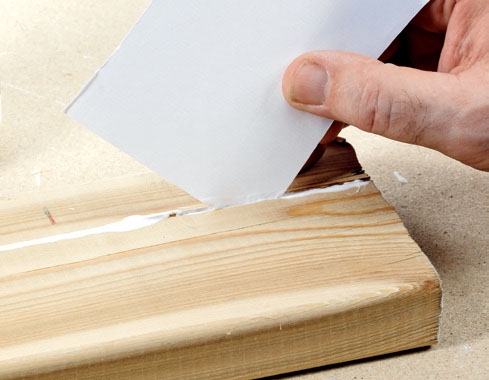 Puuliima on paksua, ja sitä on vaikea ohjata kapeaan rakoon, esimerkiksi halkeamaan. Käytä paperinpalaa lastana, niin liima menee helposti rakoon ja rako saadaan tiivistettyä hyvin.