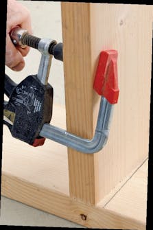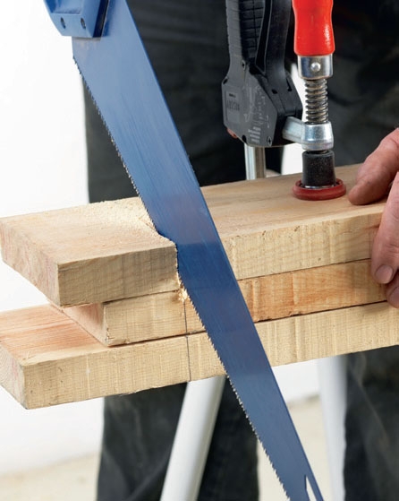 On hankala merkitä ja sahata kahta tai useampaa lautaa täysin identtisiksi. Laudat kannattaa työstää yhdellä kertaa. Tee merkit yhteen lautaan, aseta se päällimmäiseksi ja purista muut siihen kiinni. Nyt voit sahata ja porata merkin mukaan, ja kaikista laudoista tulee täysin samanlaiset.