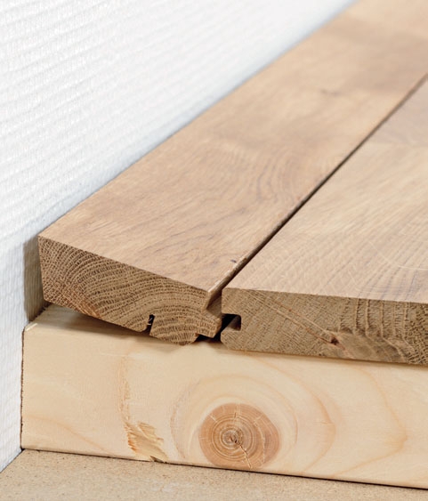Mitä paksumpi lattialauta, sitä vaikeampi viimeistä lautaa on asentaa seinän vierustalle. Kun lautaa painaa alas, takareunan alaosa ottaa kiinni seinään. Sahaamalla laudan takareunan hieman viistoksi alareunaa kohti saat laudan paikalleen ilman, että se ottaa asennettaessa seinään kiinni.