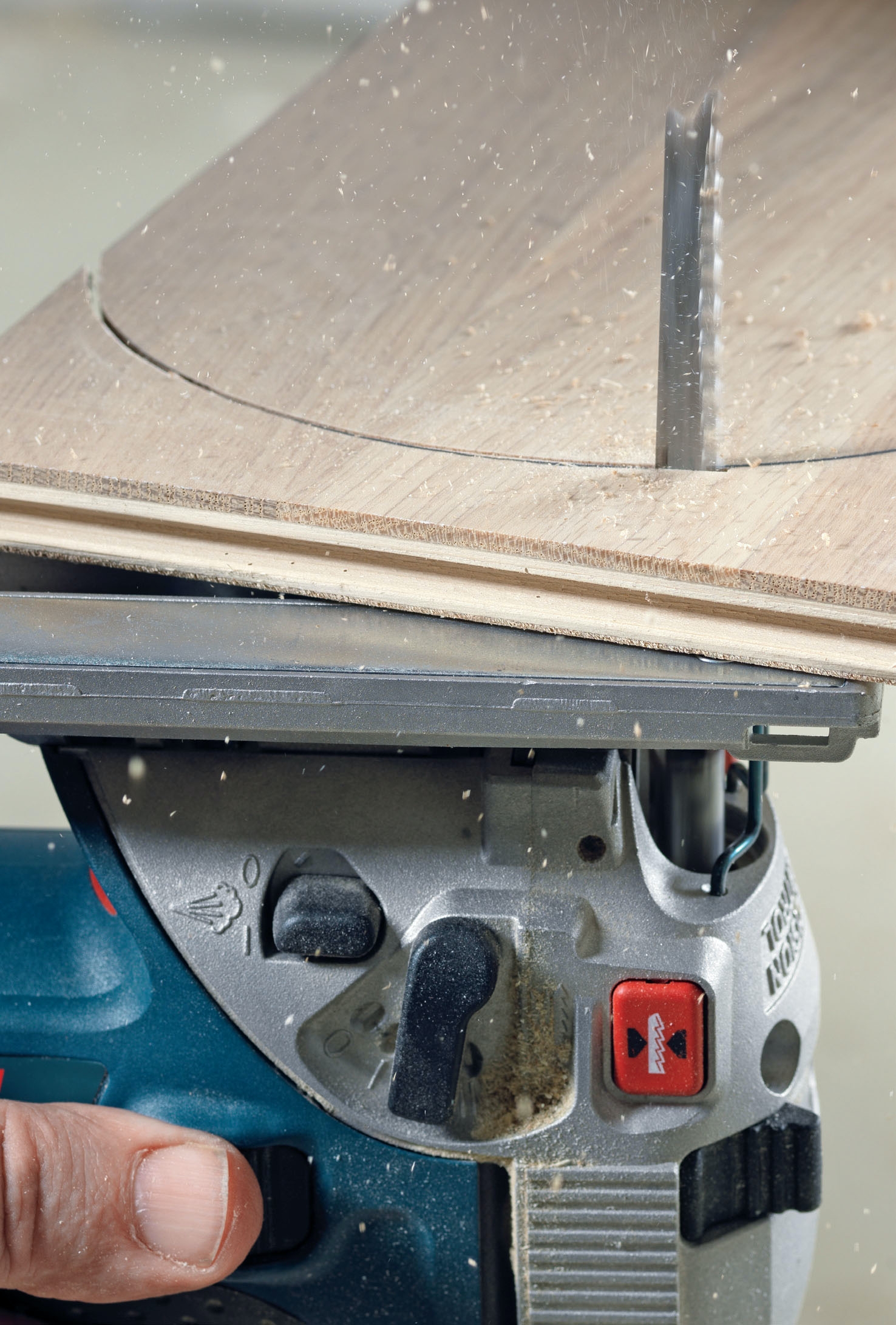 Sahaa kappaleeseen ensin parin millimetrin syvyyteen ennen kuin sahaat sen läpi, jottei puu rispaannu. Aseta pyörösahan teräsyvyys niin, että se viiltää pintaan juuri ja juuri viivan, kun sahan vetää takaisin läpisahausta varten.