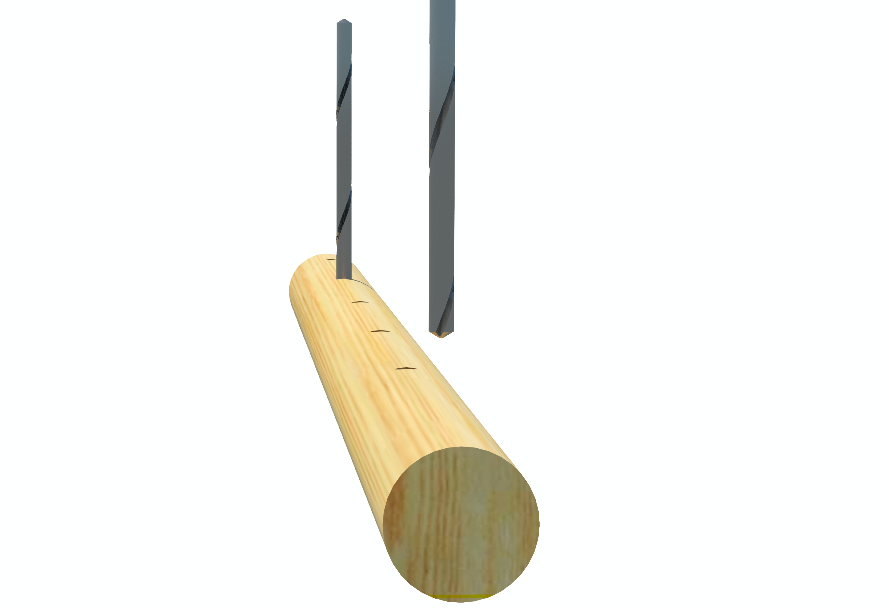 Tarvitset poraustuen. Kun olet porannut ensimmäisen reiän, siirrä pinna seuraavan merkin kohdalle. Työnnä ensimmäiseen reikään terä, jonka kärki osoittaa ylöspäin. Käytä terää, joka istuu reikään tiiviisti. Nyt näet tarkalleen, milloin työstävä poranterä ja merkkiterä ovat samalla kohdalla. Kiinnitä pinna paikoilleen ja poraa.