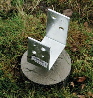 Ruuvaa kaikki tolppakengät kiinni samaan lankkuun ja upota raudat betoniin sen avulla.