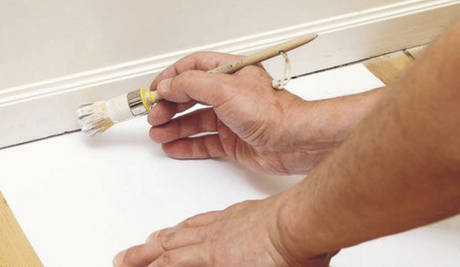 Maalarinteipillä suojaaminen on tehokasta mutta melko hidasta. Peitelistojen ja jalkalistojen vierustat voi suojata myös paljon helpommin. Ota pala ohutta pahvia, pane se pensselin viereen ja siirrä pahvia sitä mukaa, kun maalaat eteenpäin.