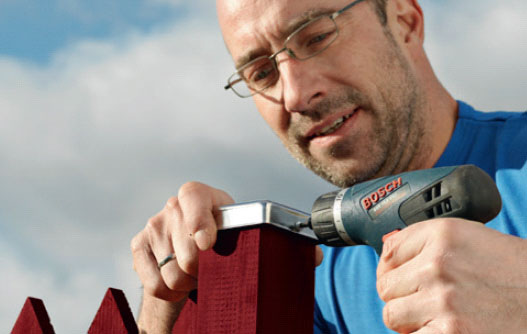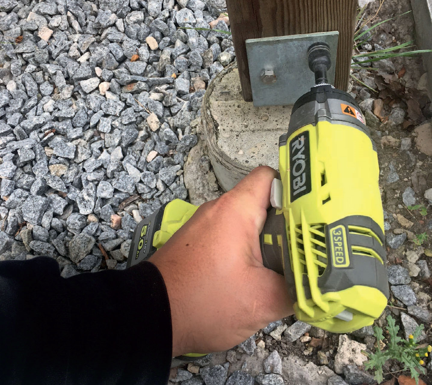 Kansiruuvit voi vääntää tolppiin tavallisilla hylsyillä, mutta isku ruuvinväännin lyö ruuvit pohjaan asti rannetta vääntämättä.