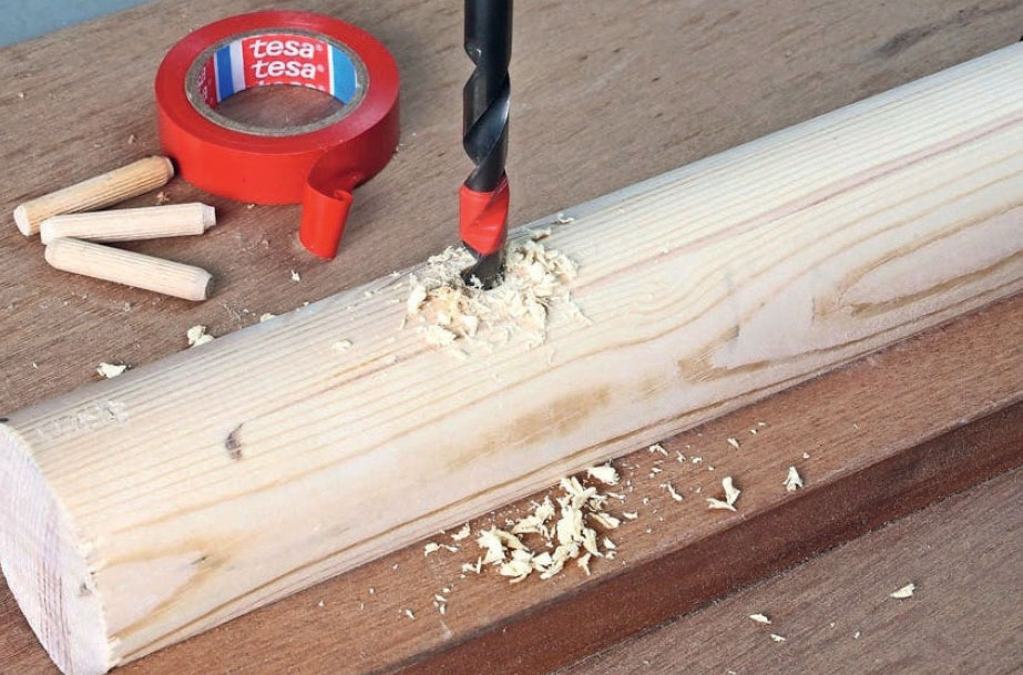 Jos sinulla ei ole oikeaa syvyysrajoitinta, voit käyttää sen sijaan teippiä. Kääri pätkä teippiä terän ympärille kohtaan, johon terän pitää pysähtyä. Se pitää reiät oikean syvyisinä.